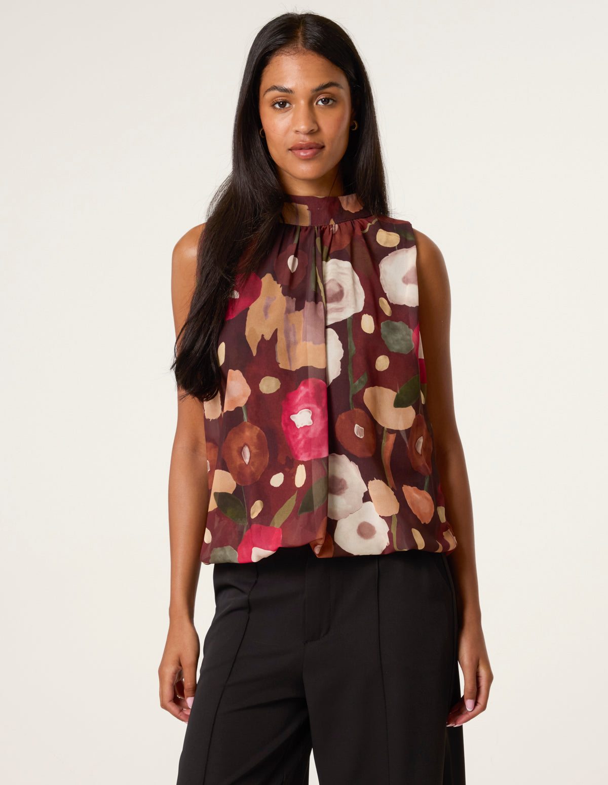 Oh so autumnal, team this watercolour blouse with brown PU leather trousers and heels for the perfect date night look.