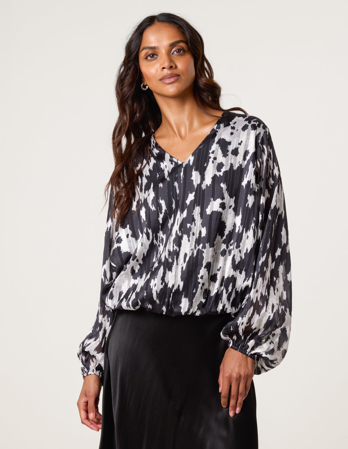 The ultimate blouse every wardrobe will be craving this season! This fun, printed blouse is simply perfect for every kind of occasion. Team with flared trousers and pumps for the ideal office wear outfit.