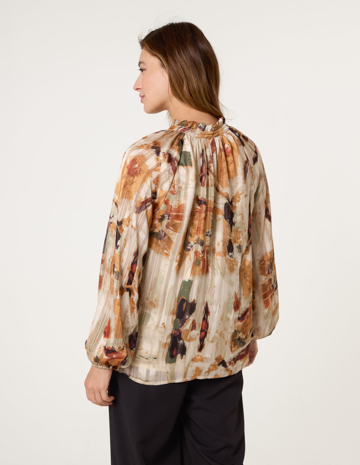 Turn to this watercolour, metallic blouse for an effortlessly chic look from week days to weekends. Team with suedette boots and jacket for the perfect boho kinda look.