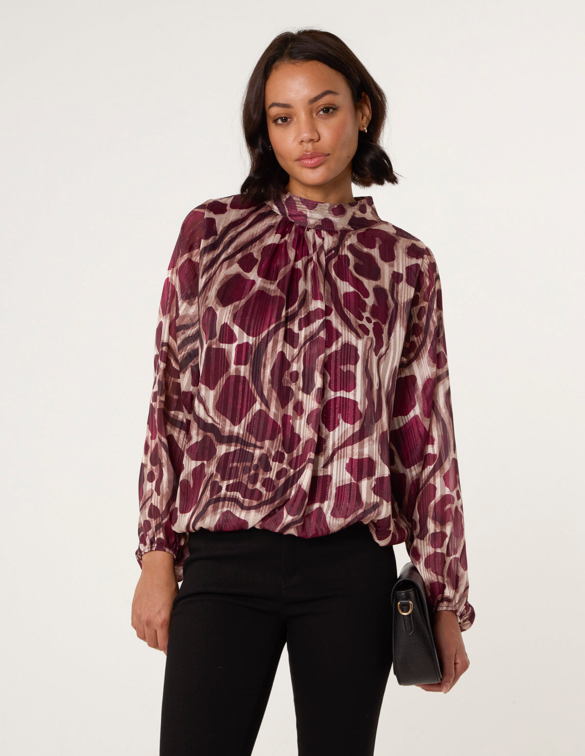 It's time to add a spin to your everyday blouse, this high neck puffball top adds a unique look to your workwear collection.