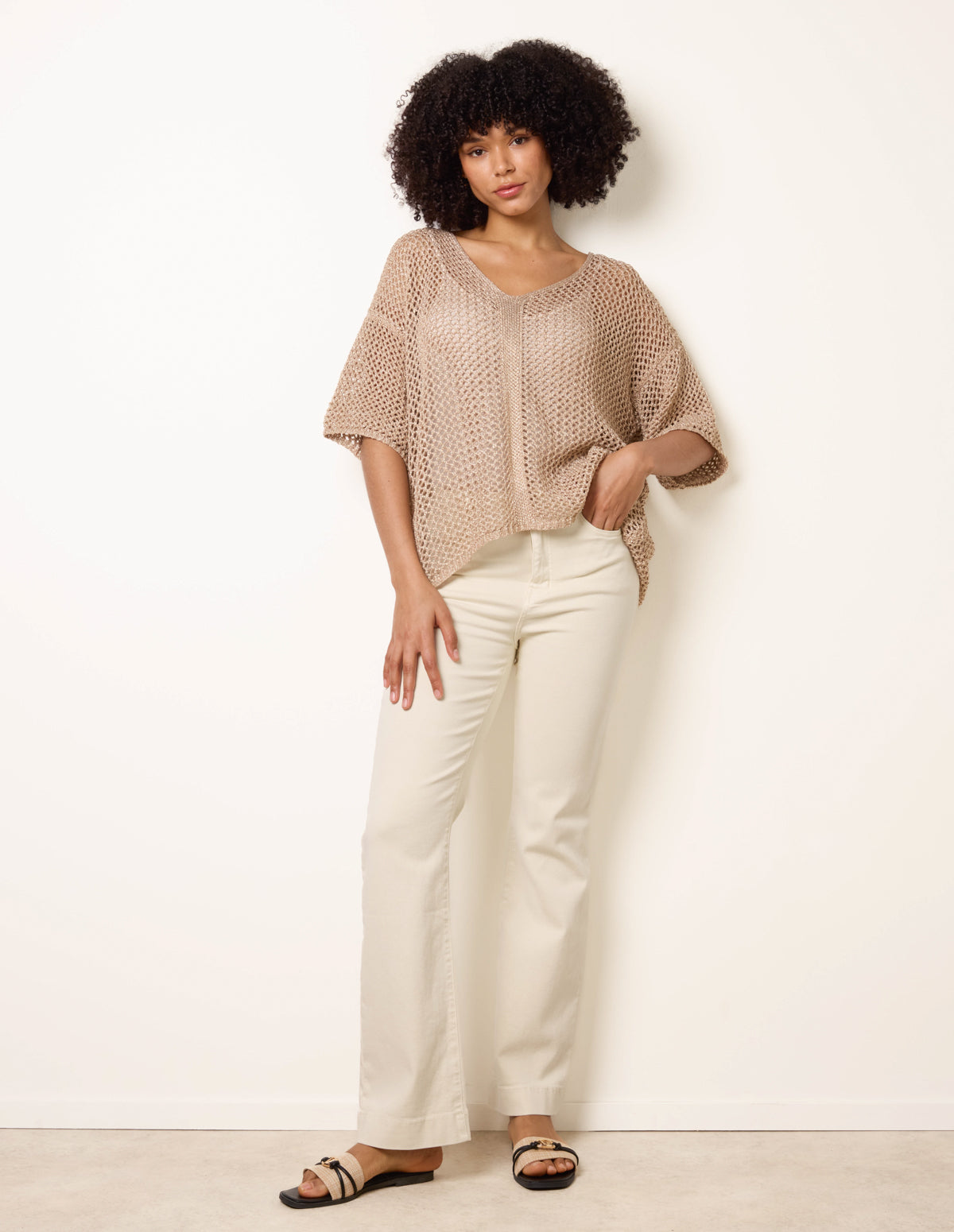 Mesh Knitted Top With Short Sleeves