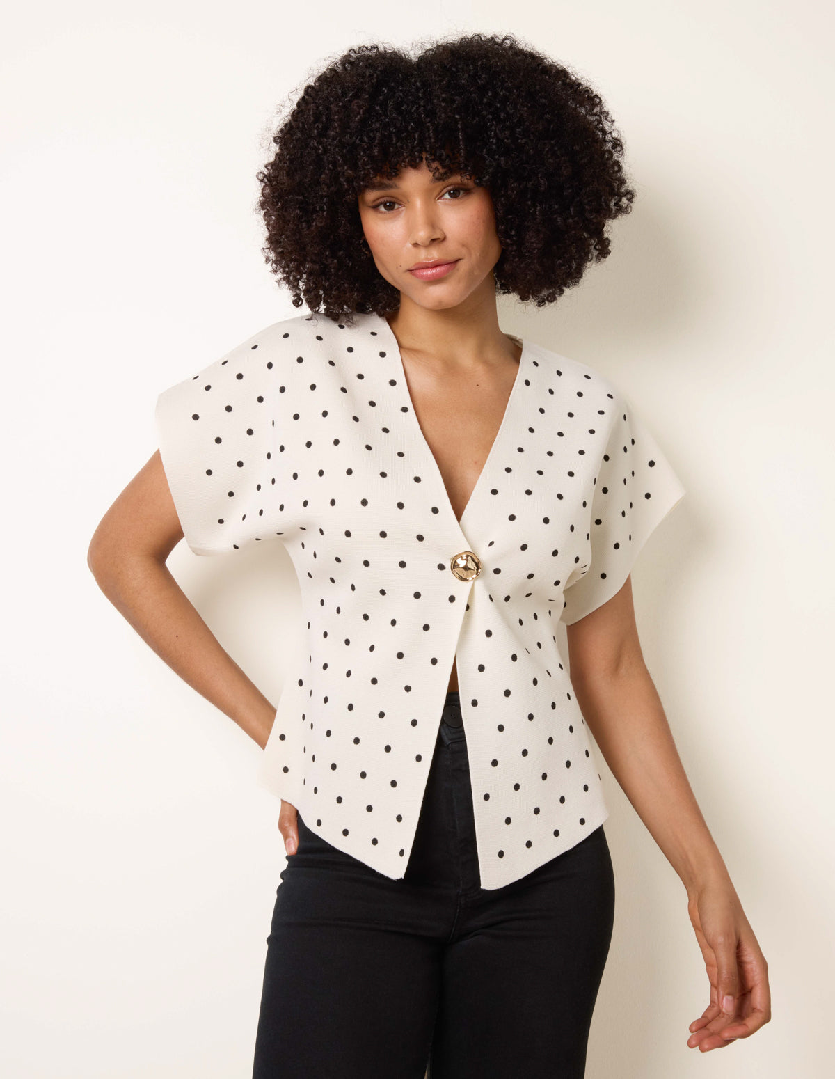Polka Dot Short-Sleeve Knit Cardigan Top