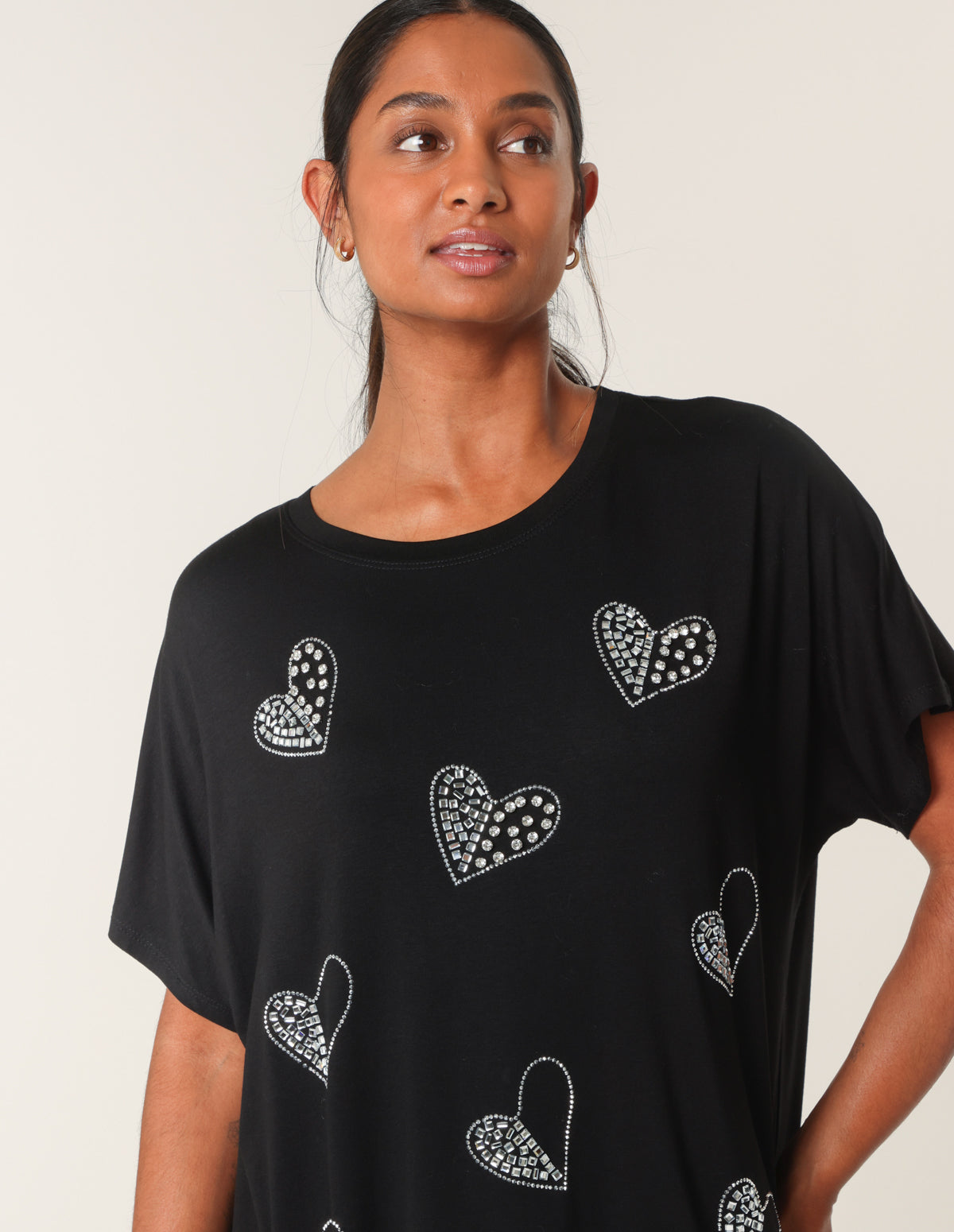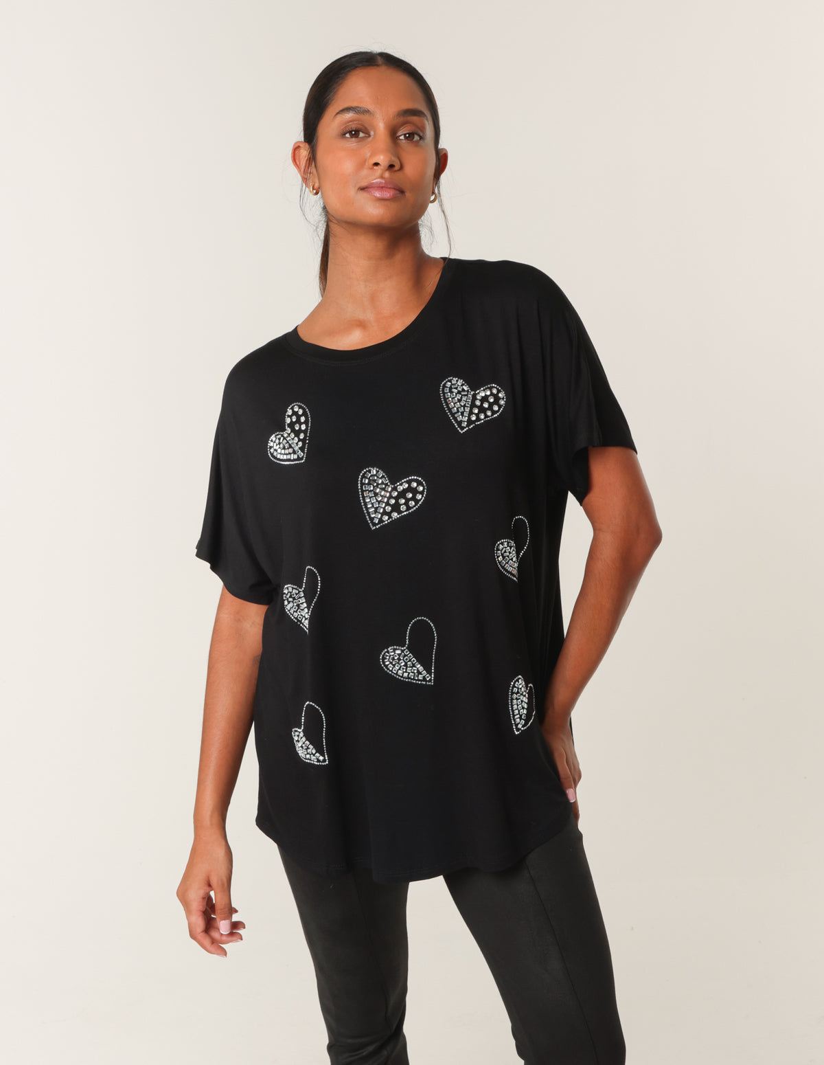 Switch up your basic wear this season. Team this cute diamante heart detailed top with jeans and trainers.