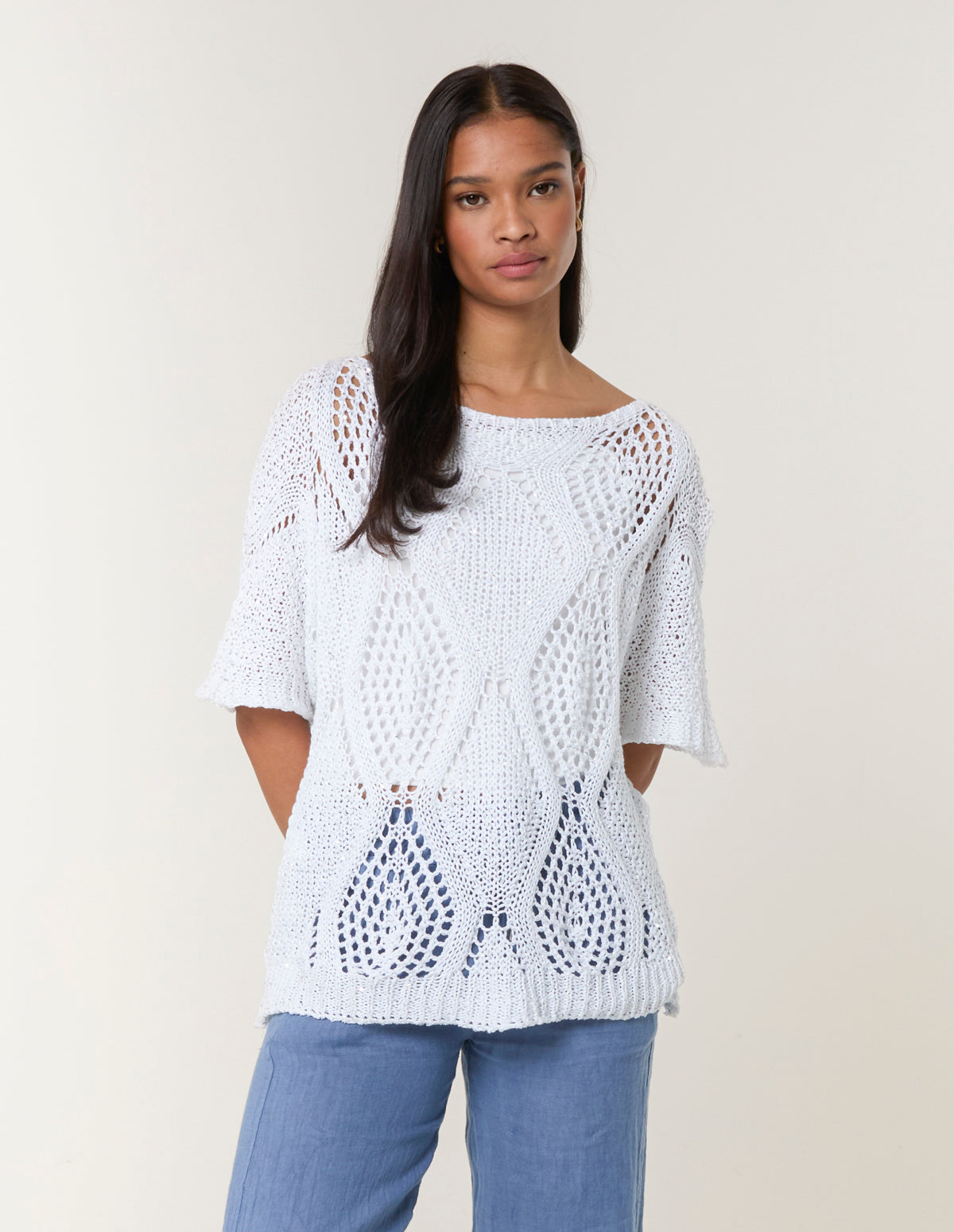 This crochet pocket jumper is a lovely addition to your knitwear collection. Packed with pretty features, including stylish crochet design, flattering neckline, and pockets to keep the chill at bay. We love to wear her with trousers and skirts or over dresses for a versatile layered look.