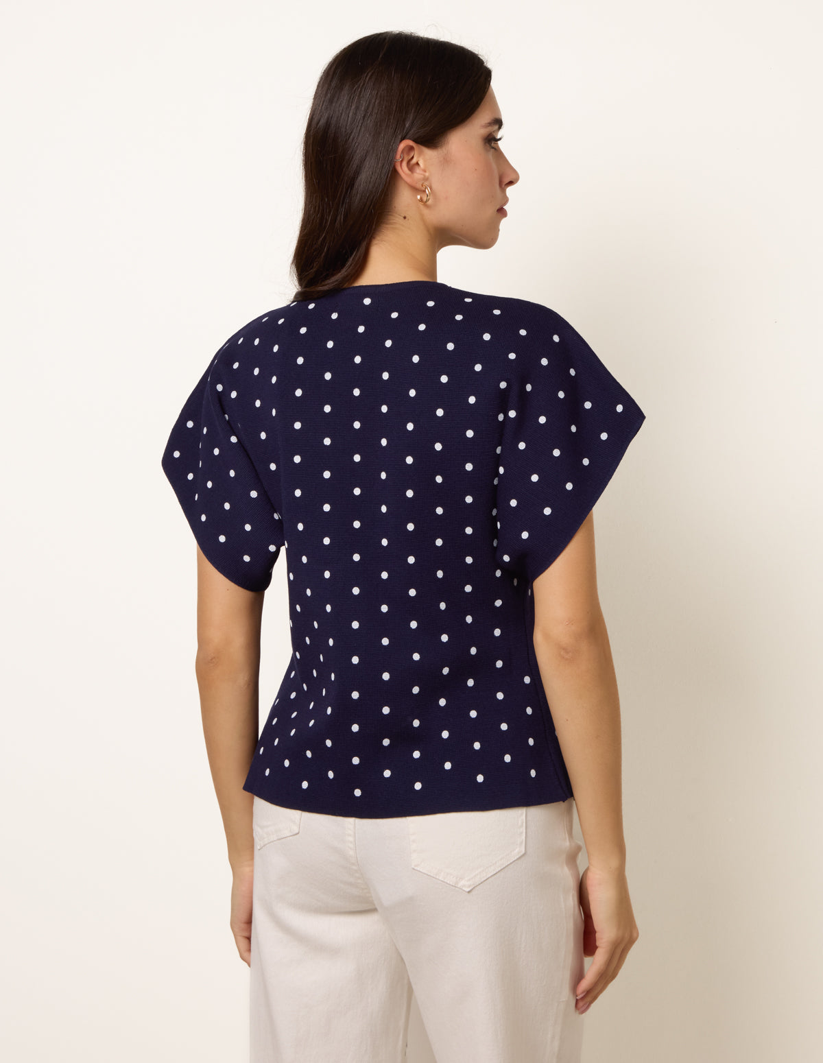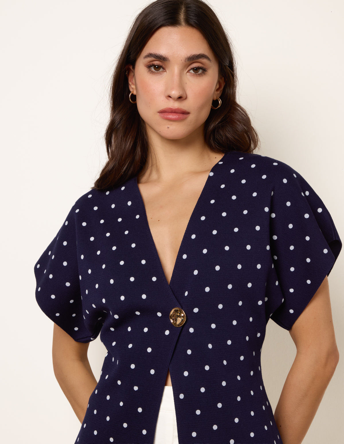 Polka Dot Short-Sleeve Knit Cardigan Top