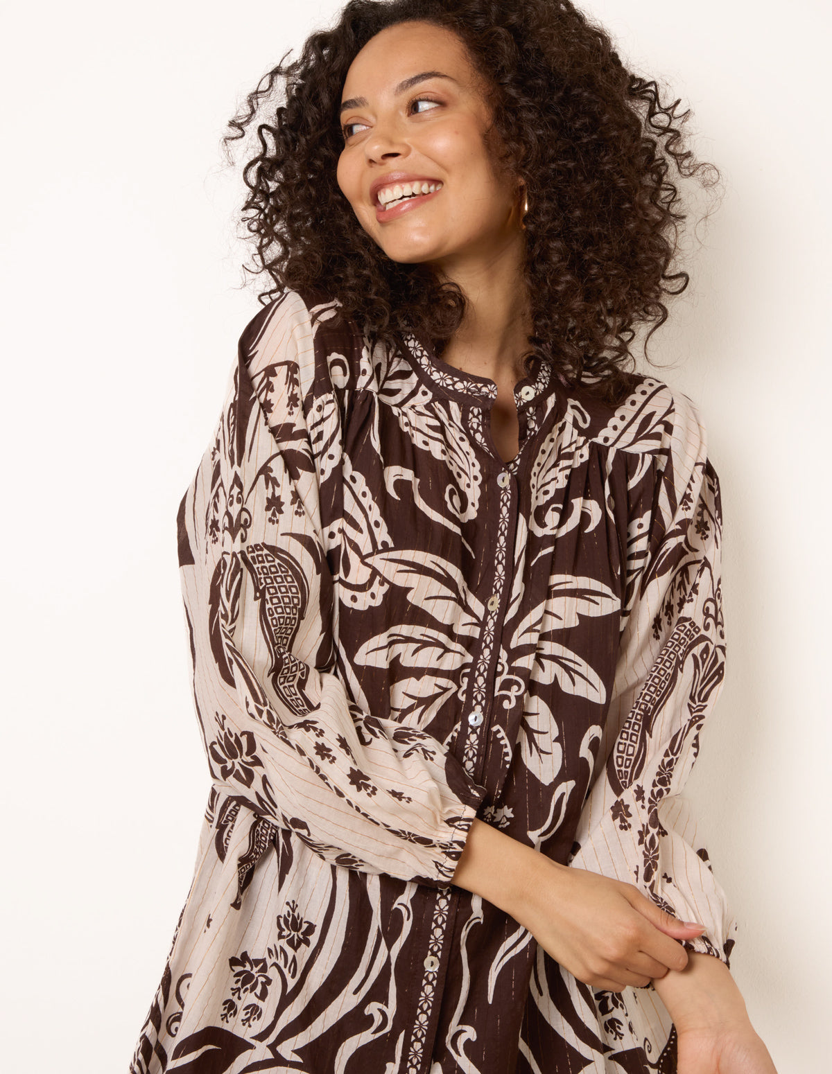 A breezy shirt to be worn from the office to the beach. This light button front shirt is all you need this summer.