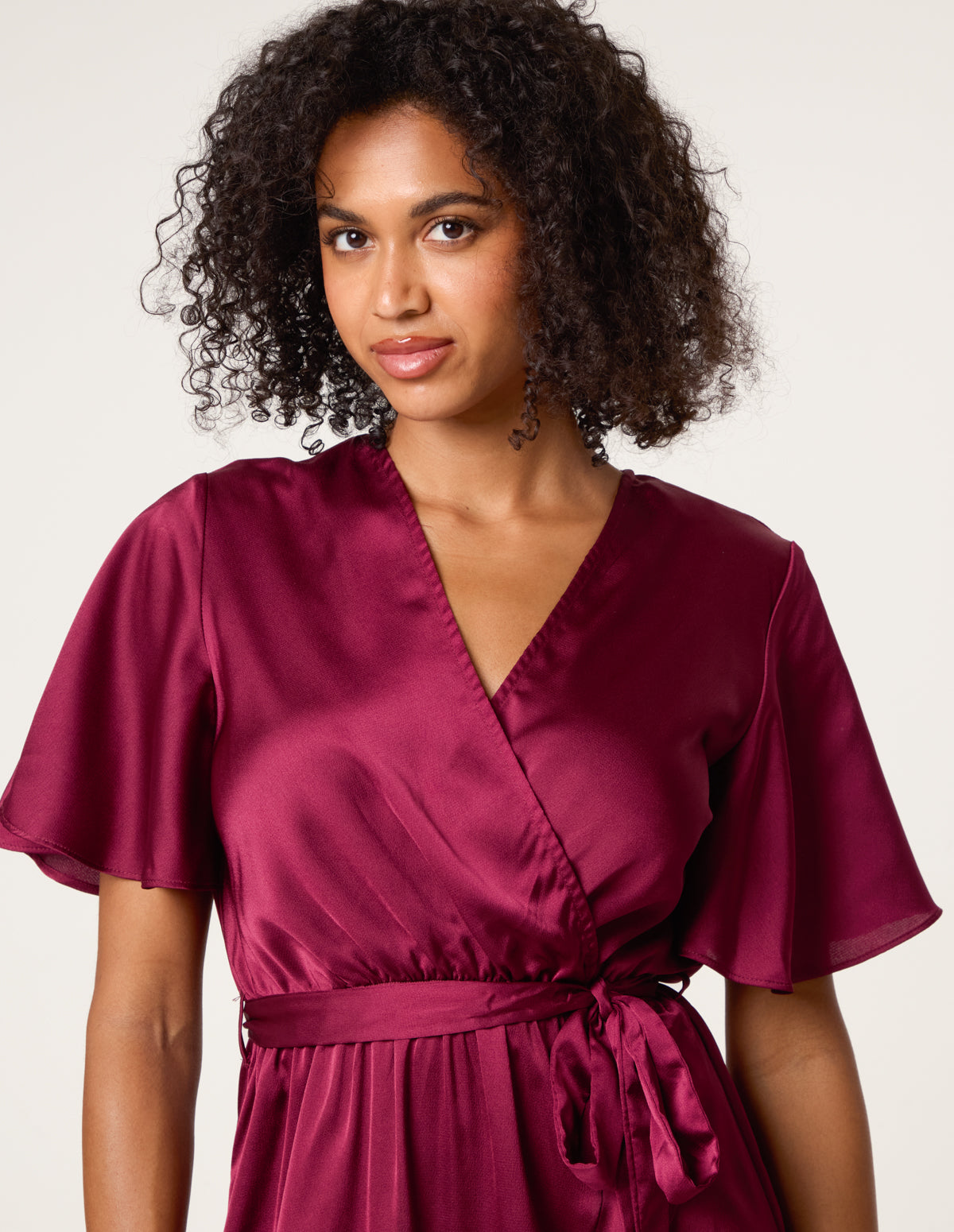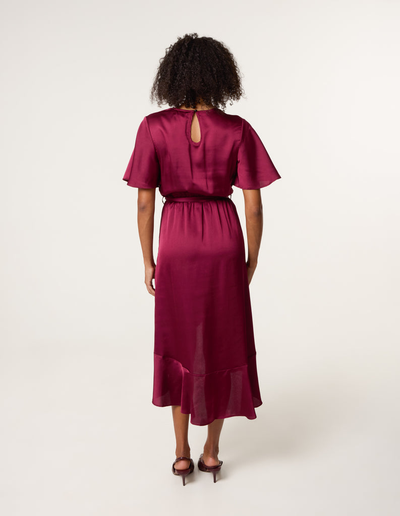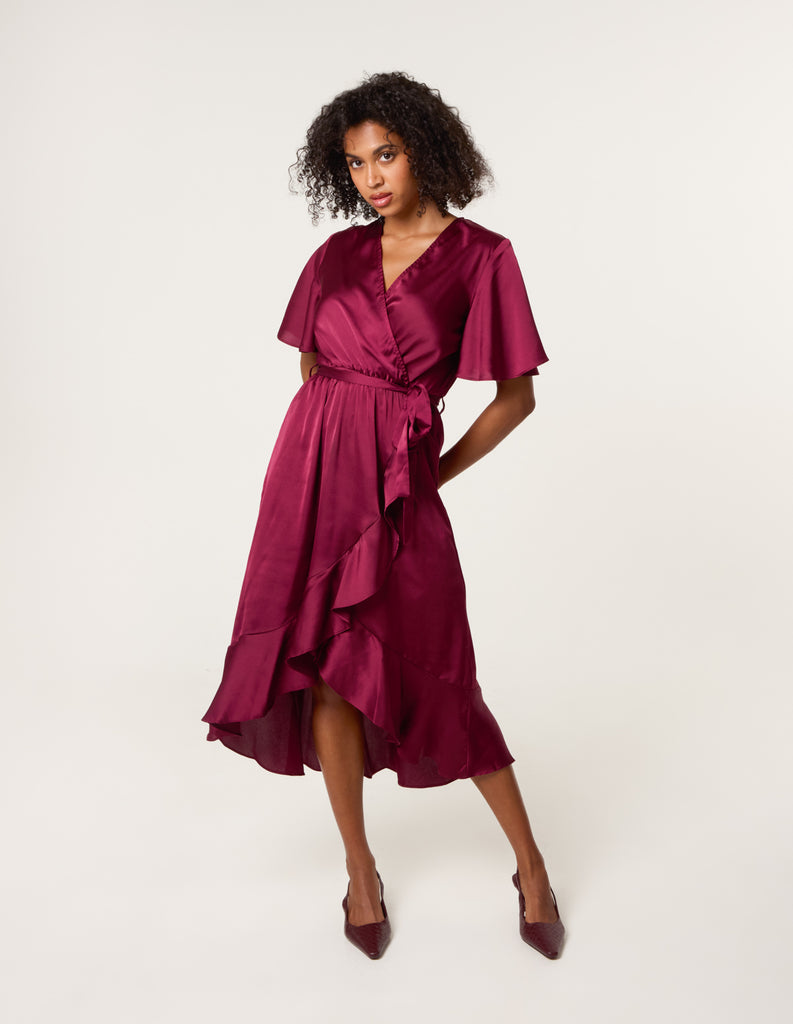 Satin Wrap Frill High To Low Midi Dress