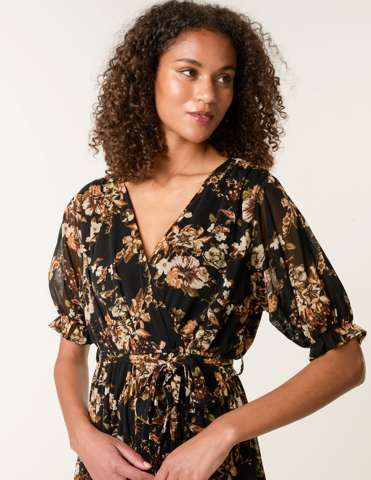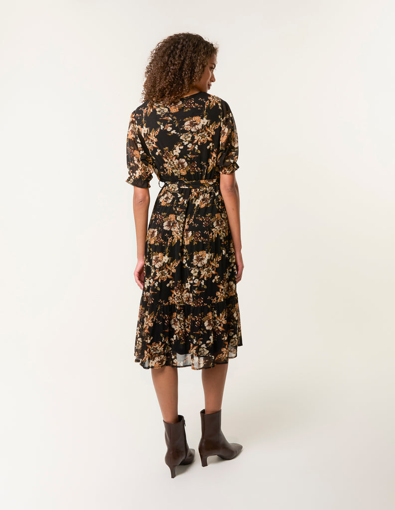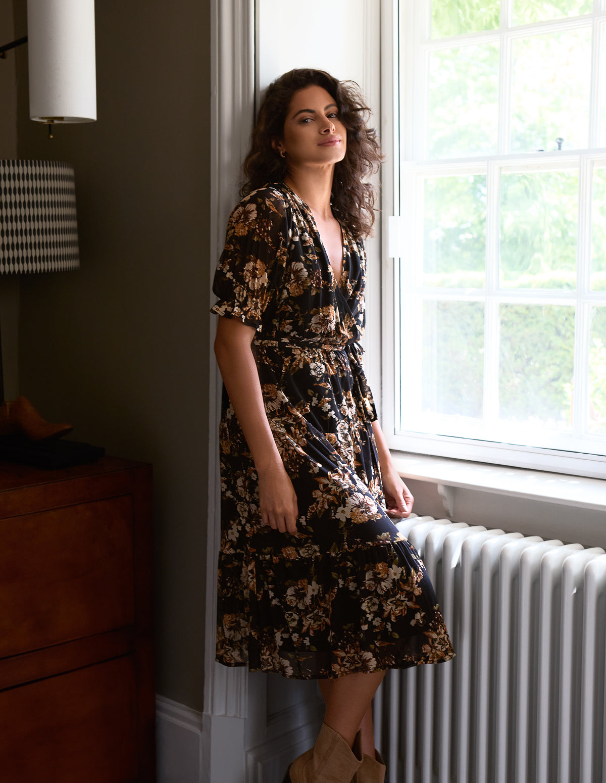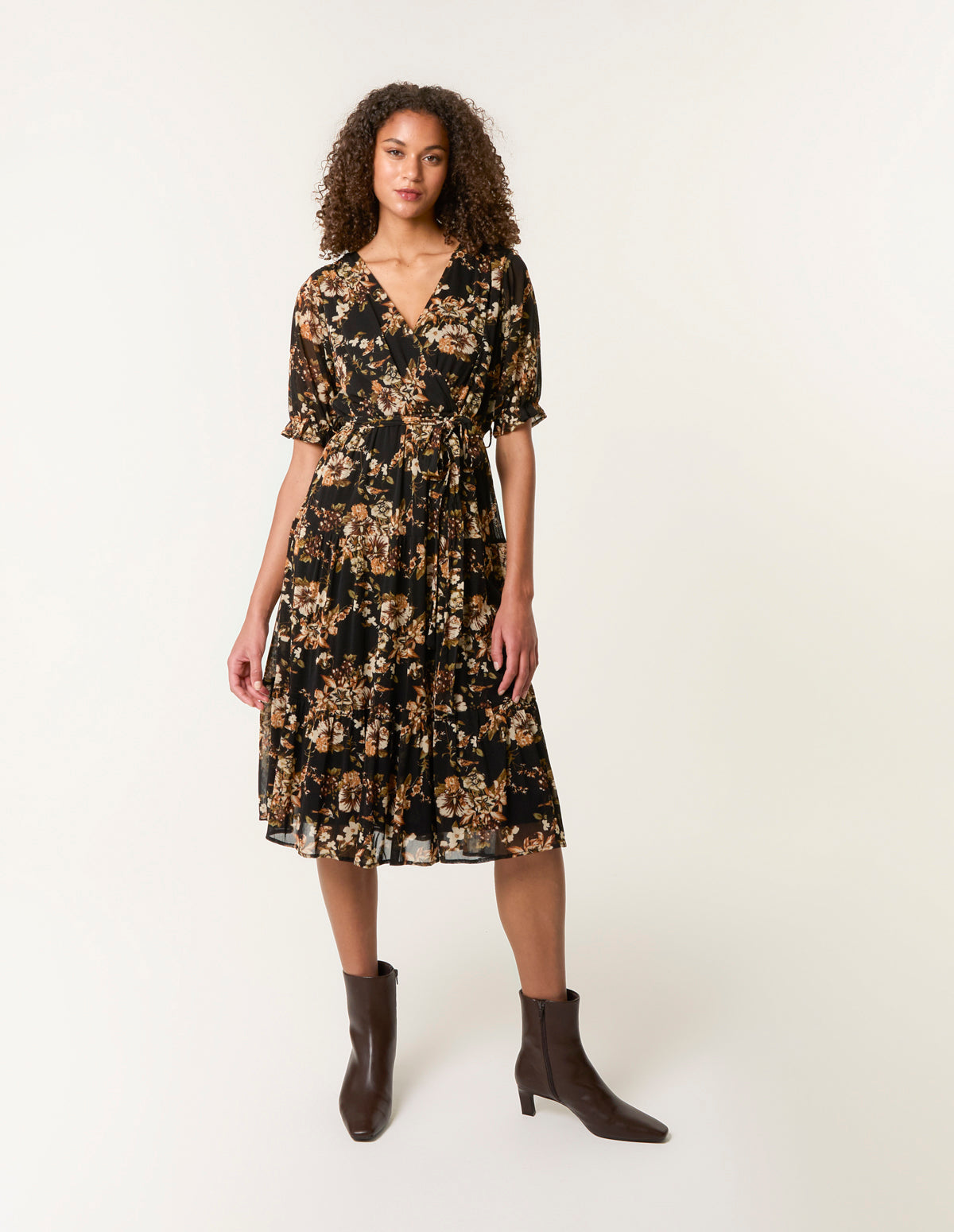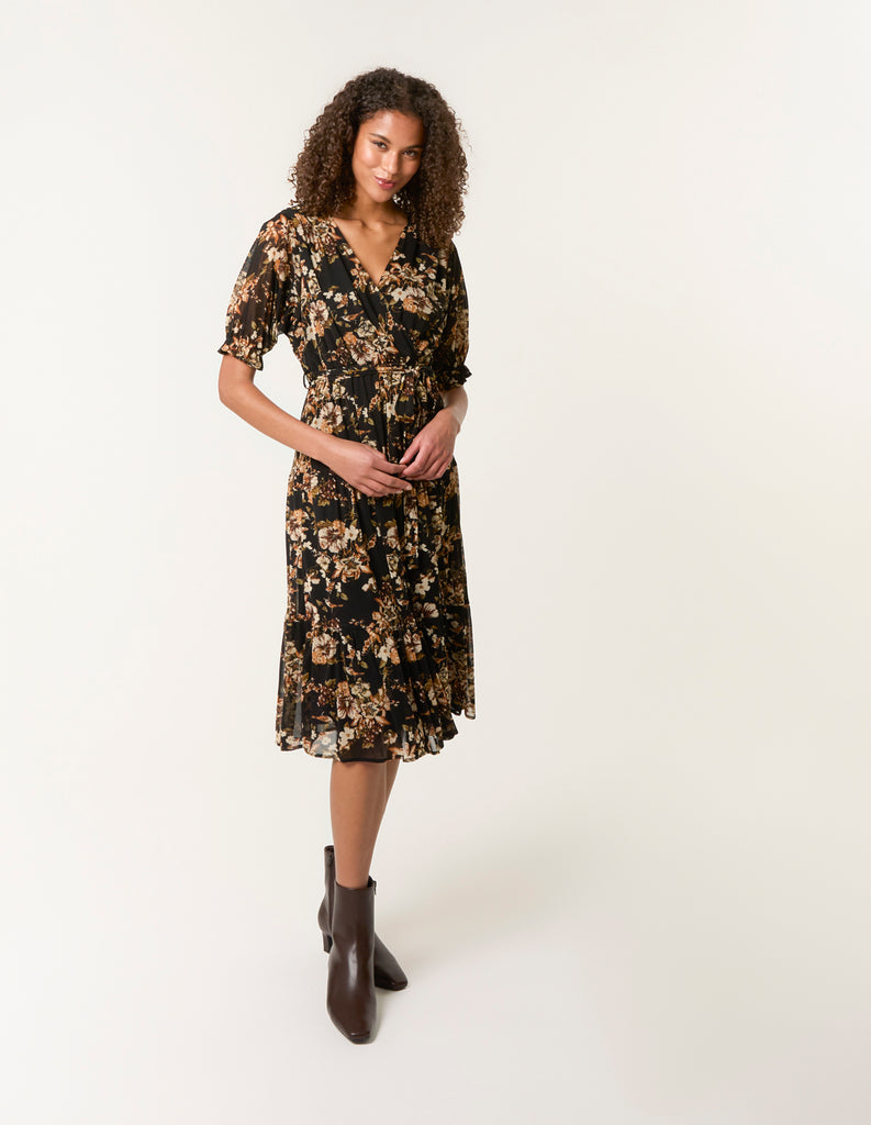 Floral to have you feeling great through those colder days. This wrap dress is a perfect dress for your next occasion. Team with beige court heels.
