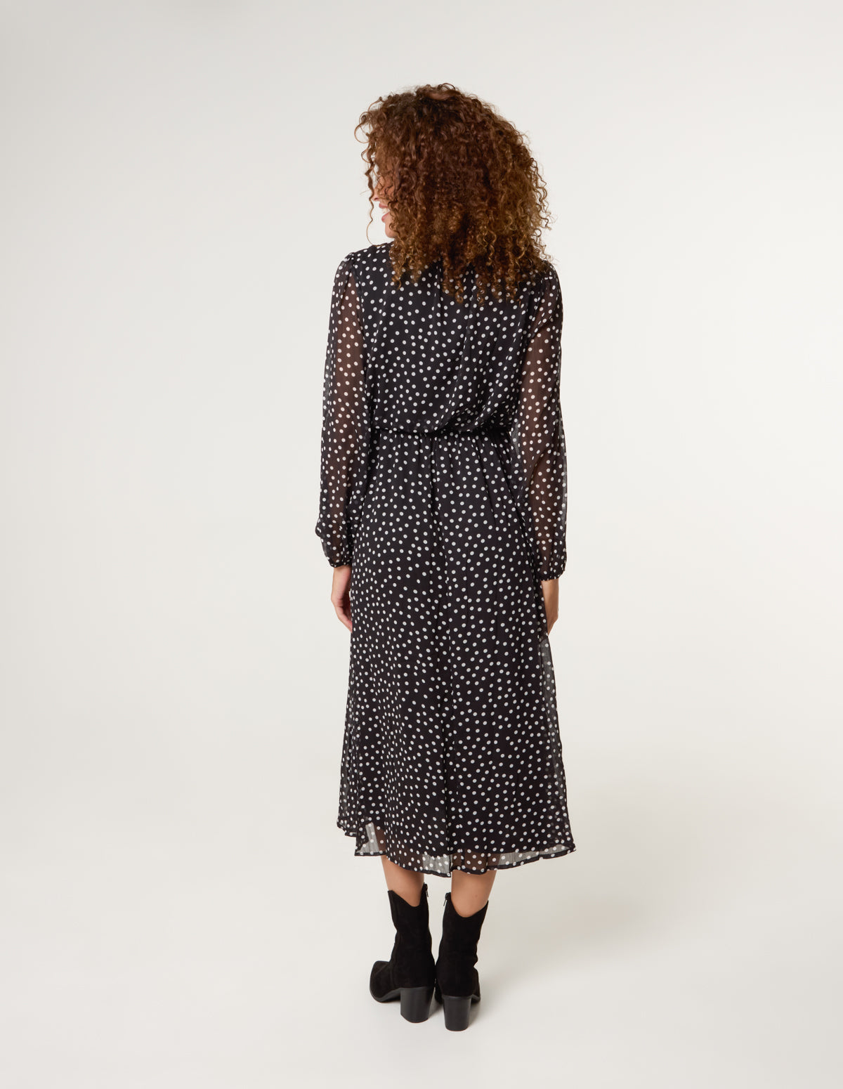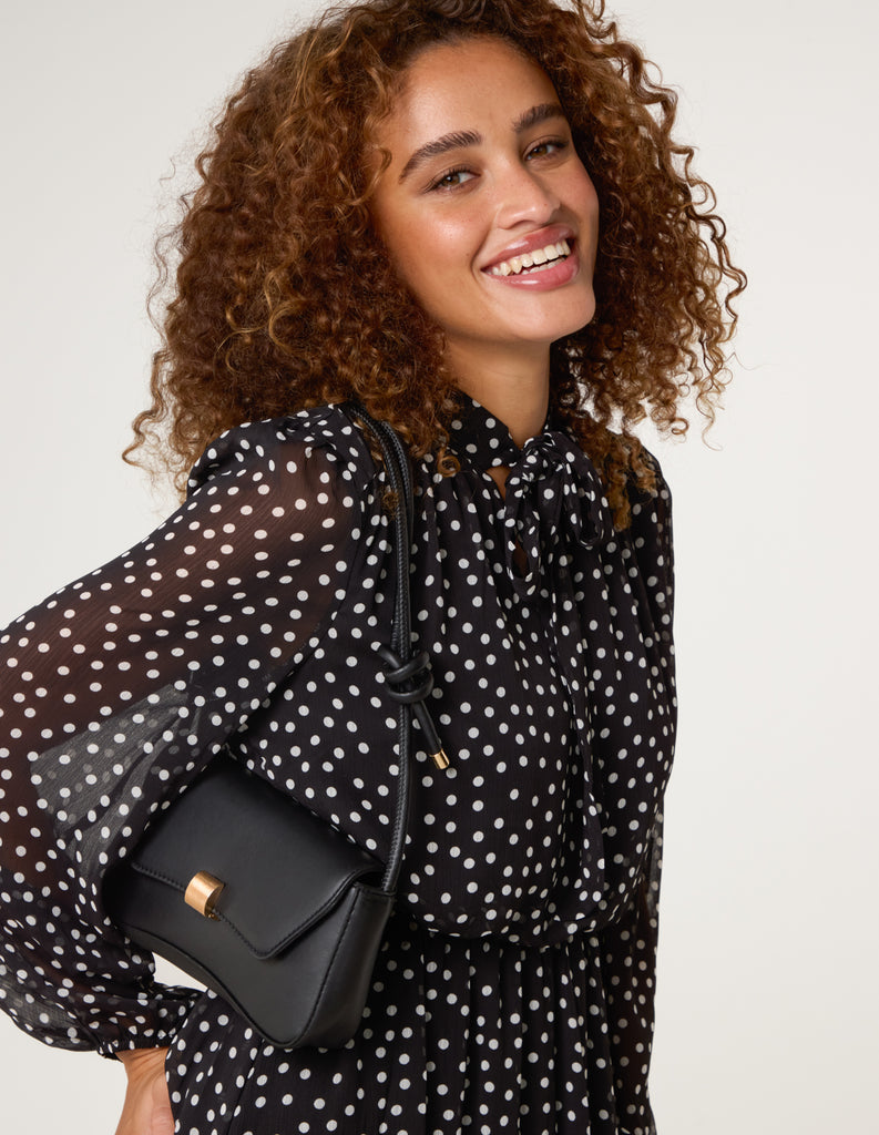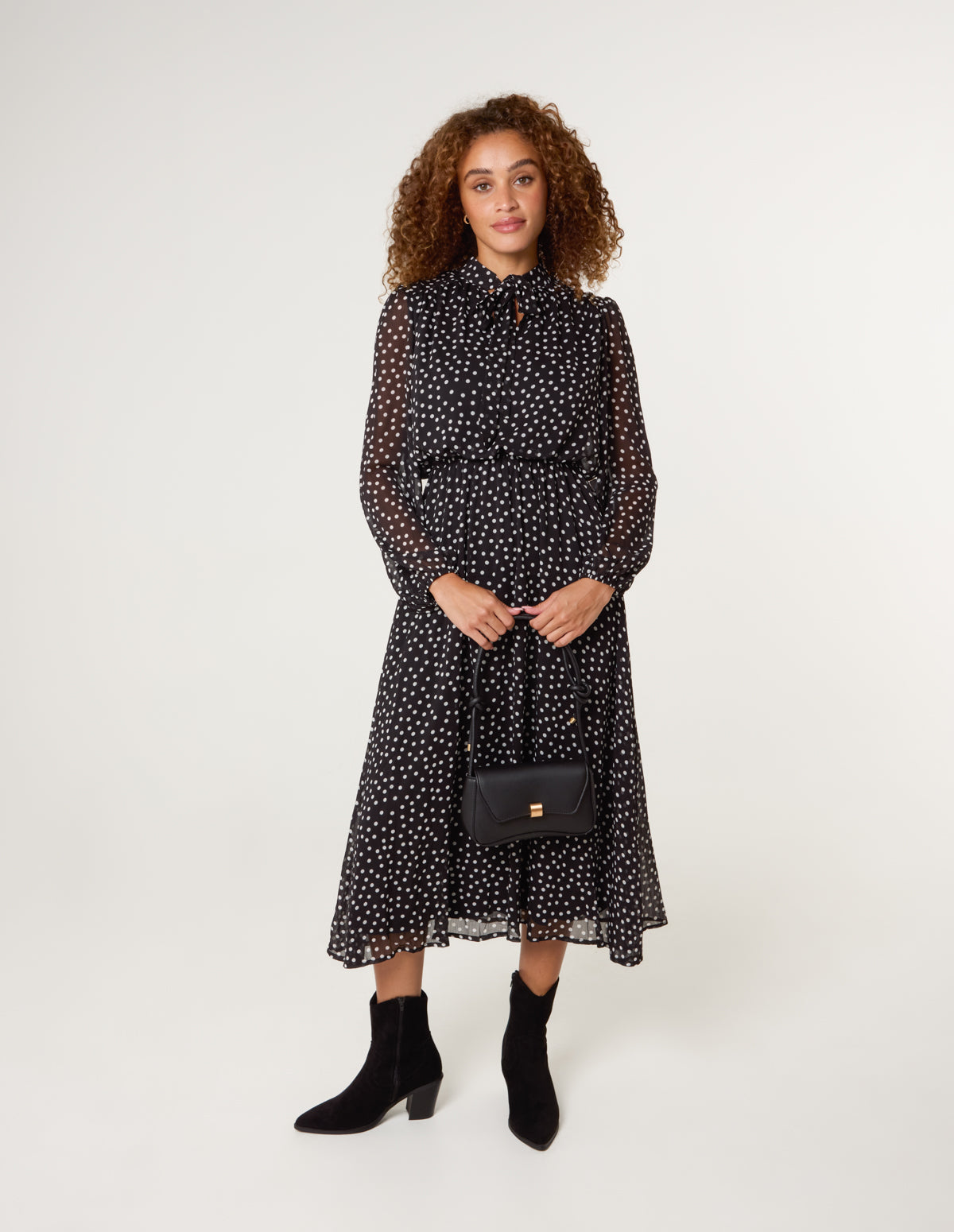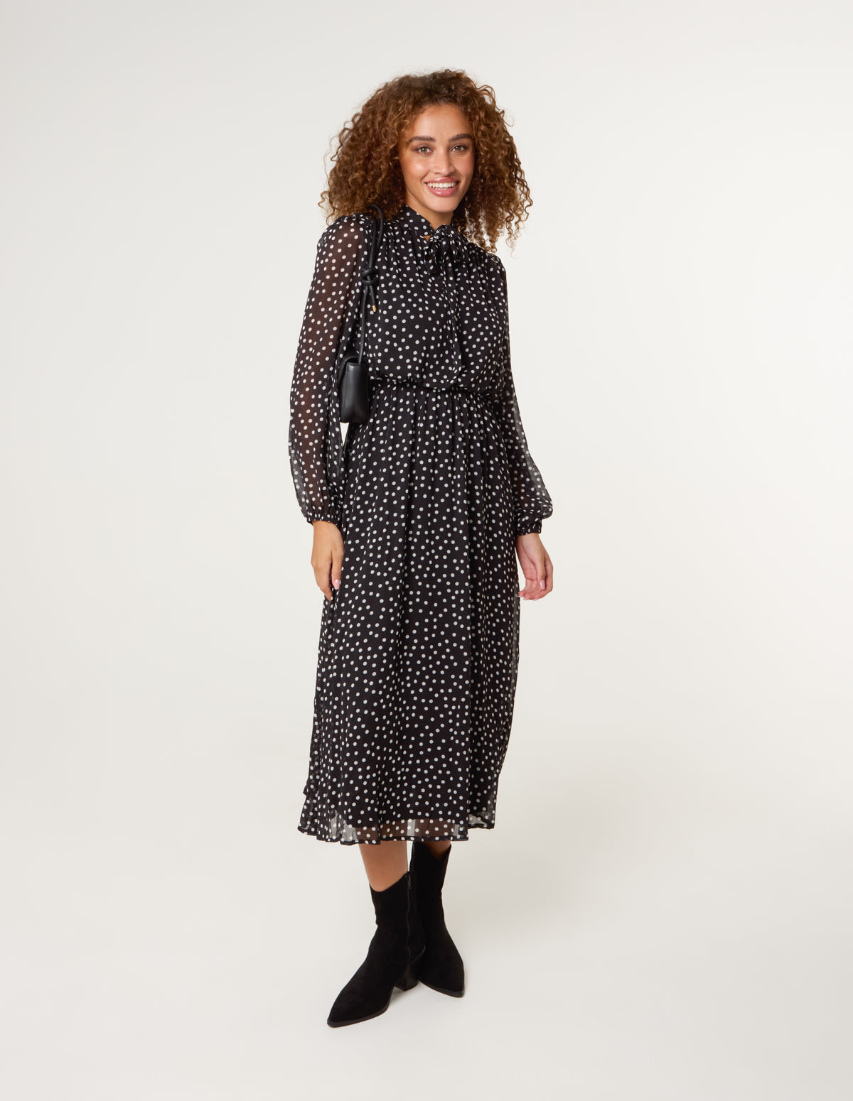 Polka Dot Tie Neck Midi Dress