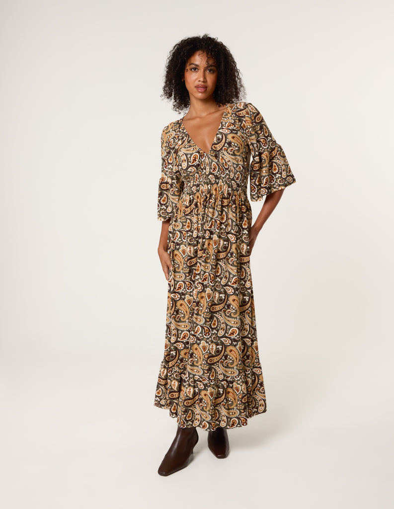 A fun printed dress for the office. Have a little fun with your formal wear with this soft touch V neck dress. Team with tights, pumps and a cute cardi.