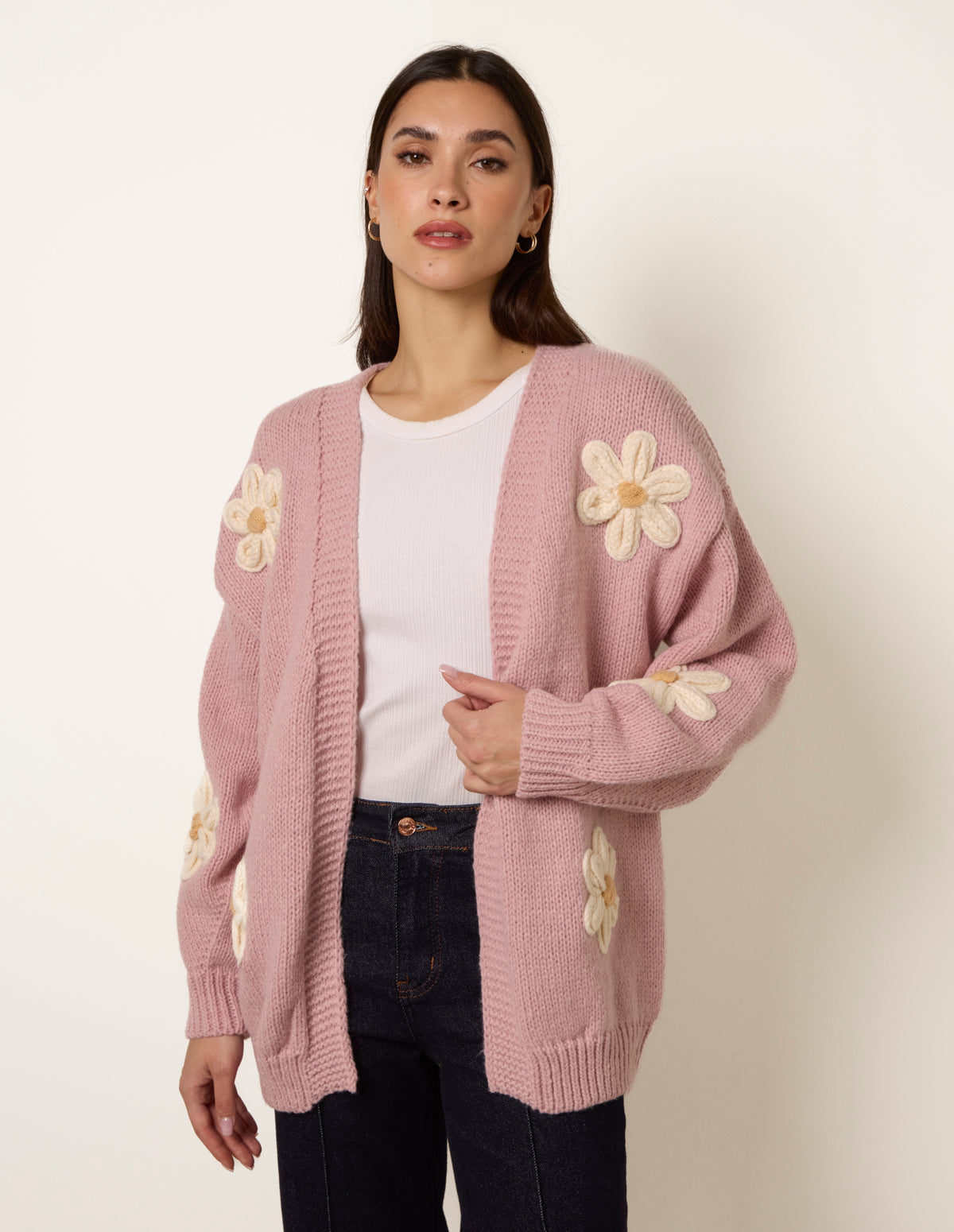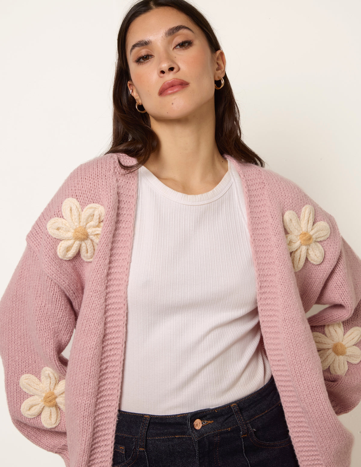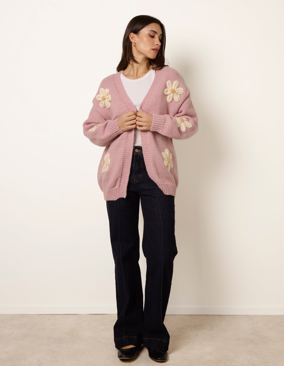 Taking it back to the 70's this season! This oversized, daisy embroidery knitted cardigan provides just that! Team this chunky cardigan with flares and pumps and gain ultimate styling points this AW.