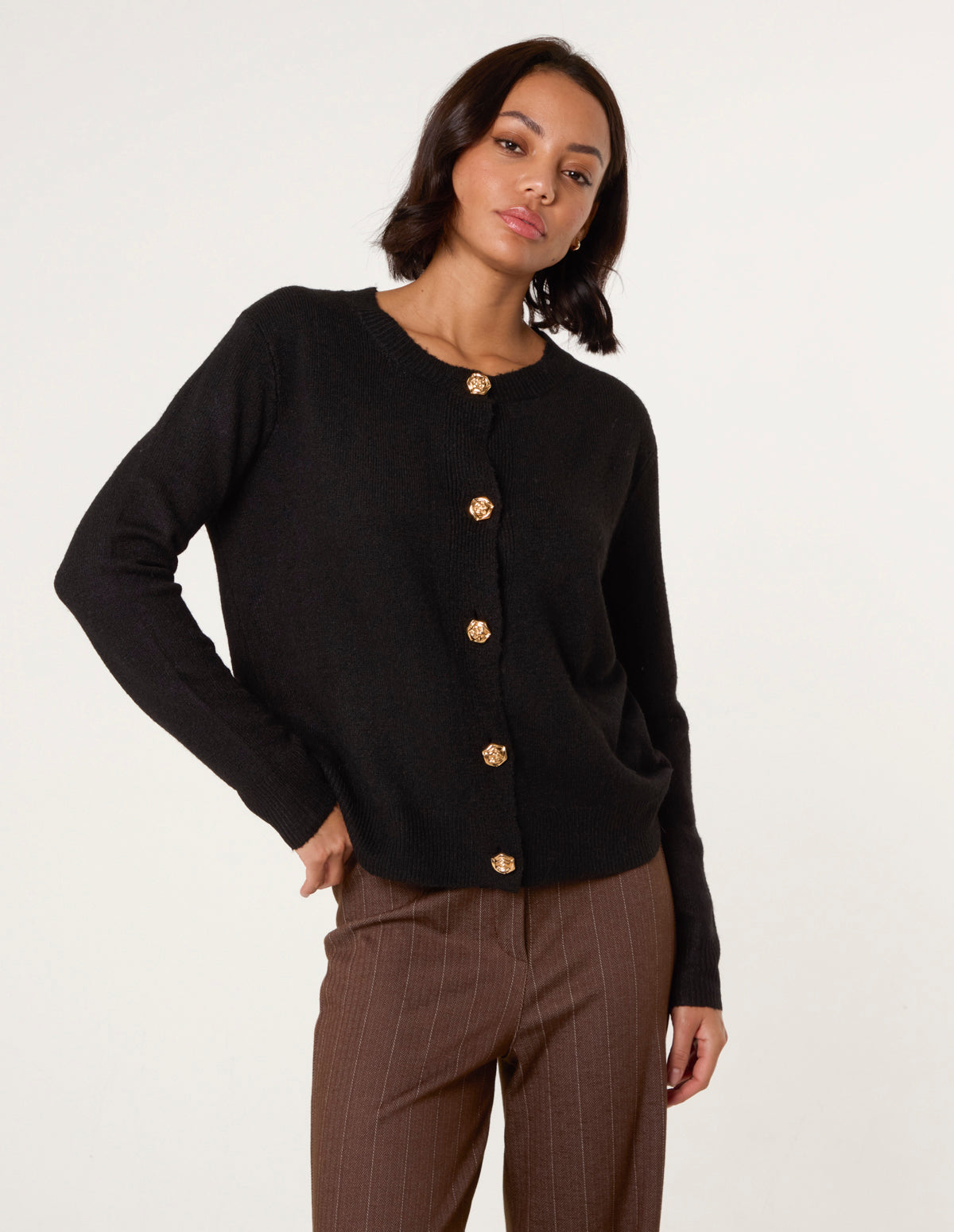Gold Flower Buttons Cardigan