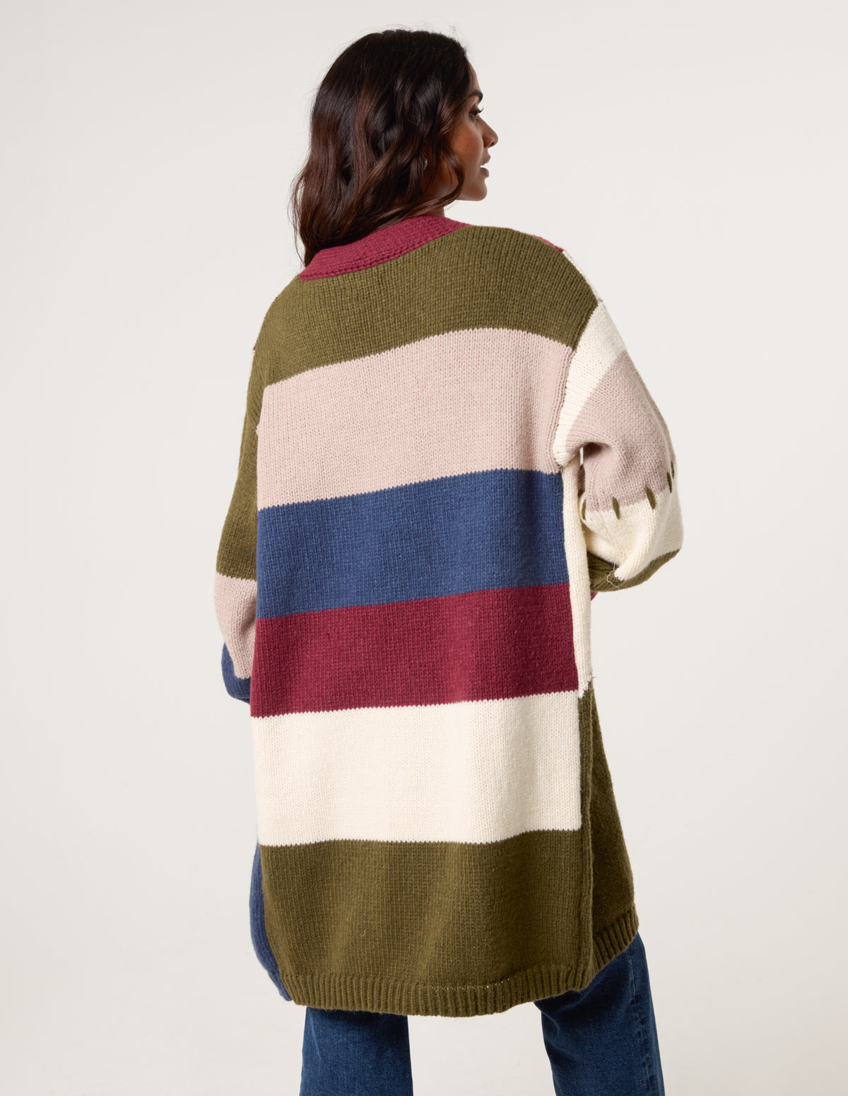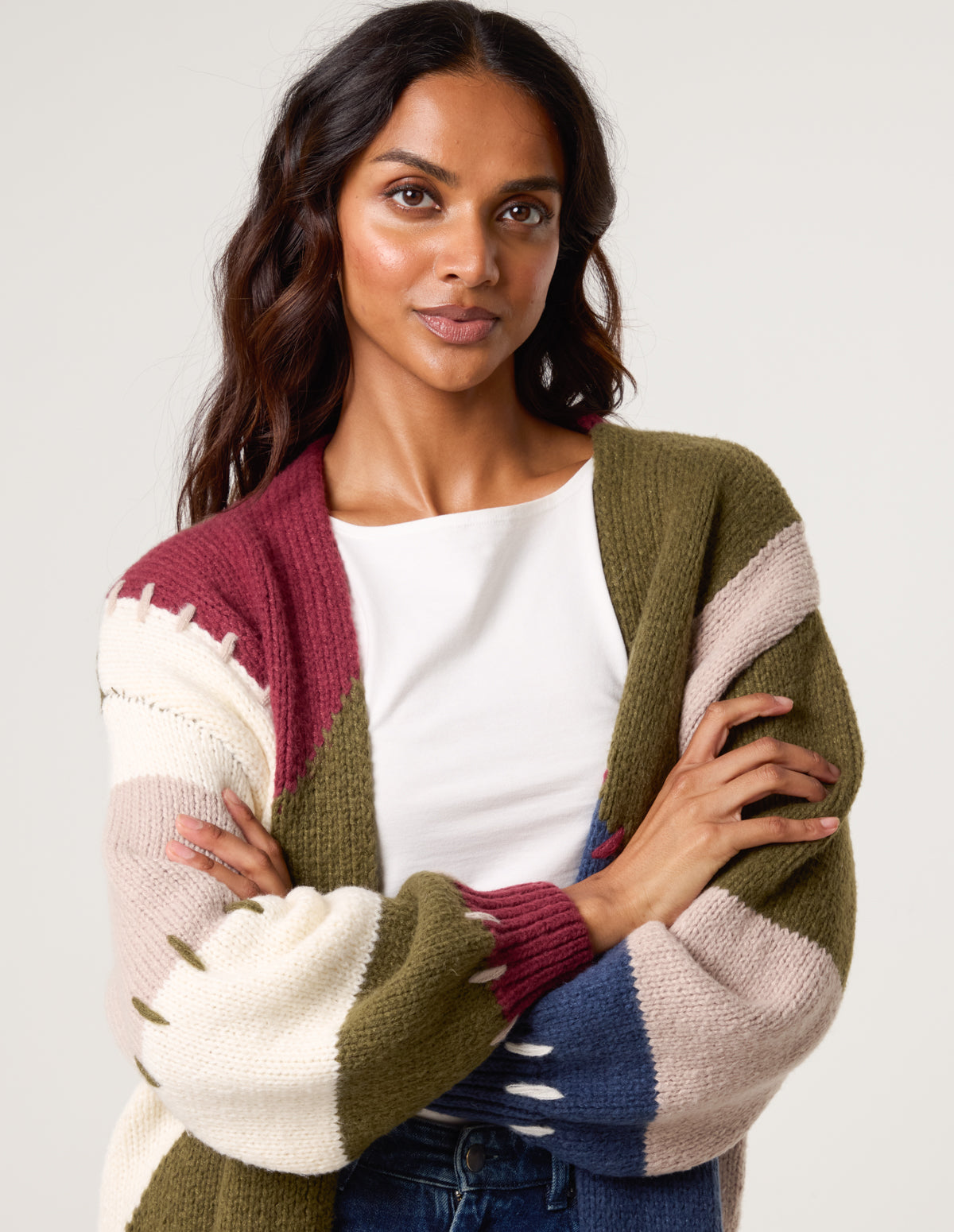 The contrasting blanket stitch gives this chunky knit jumper a modern spin. Style with jeans and trainers for an easy weekend look.