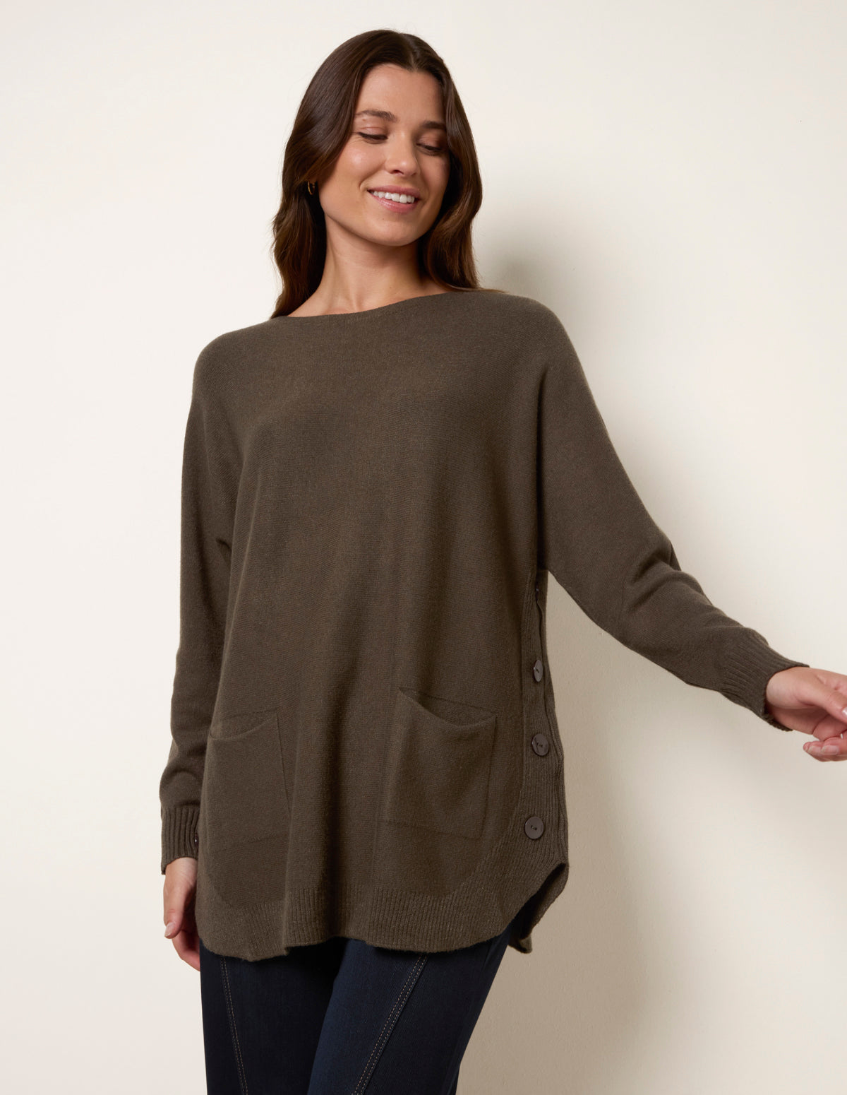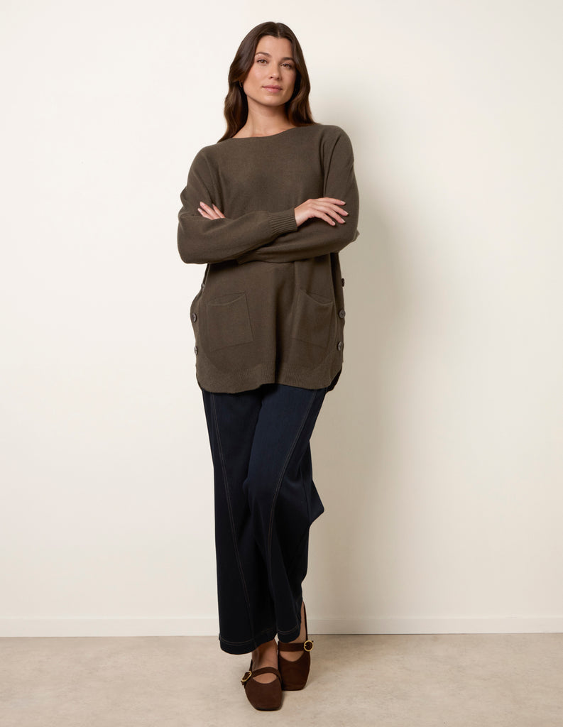 Boasting pockets that provide added wearability, this soft touch jumper is a staple pick teamed with mom jeans and white trainers.