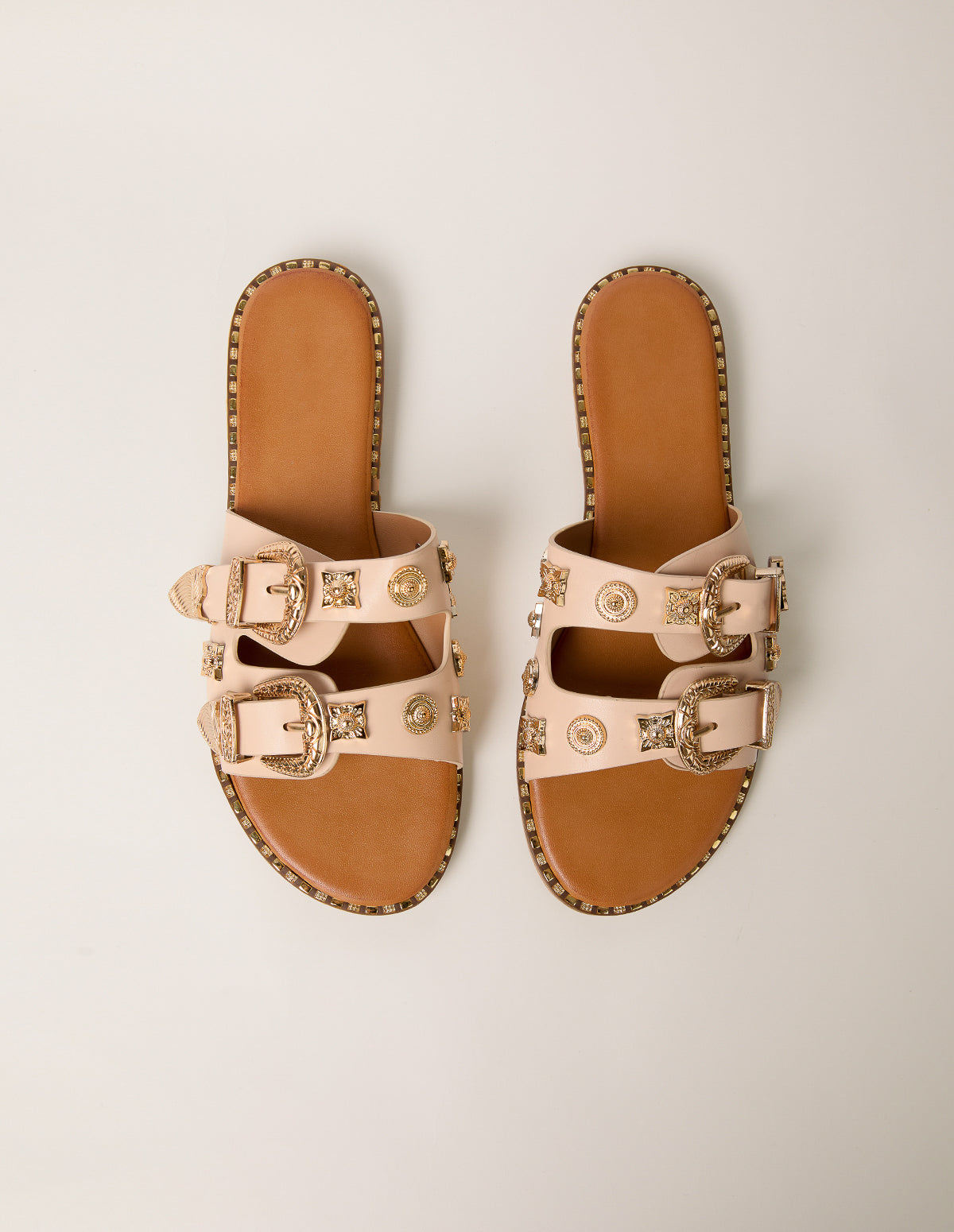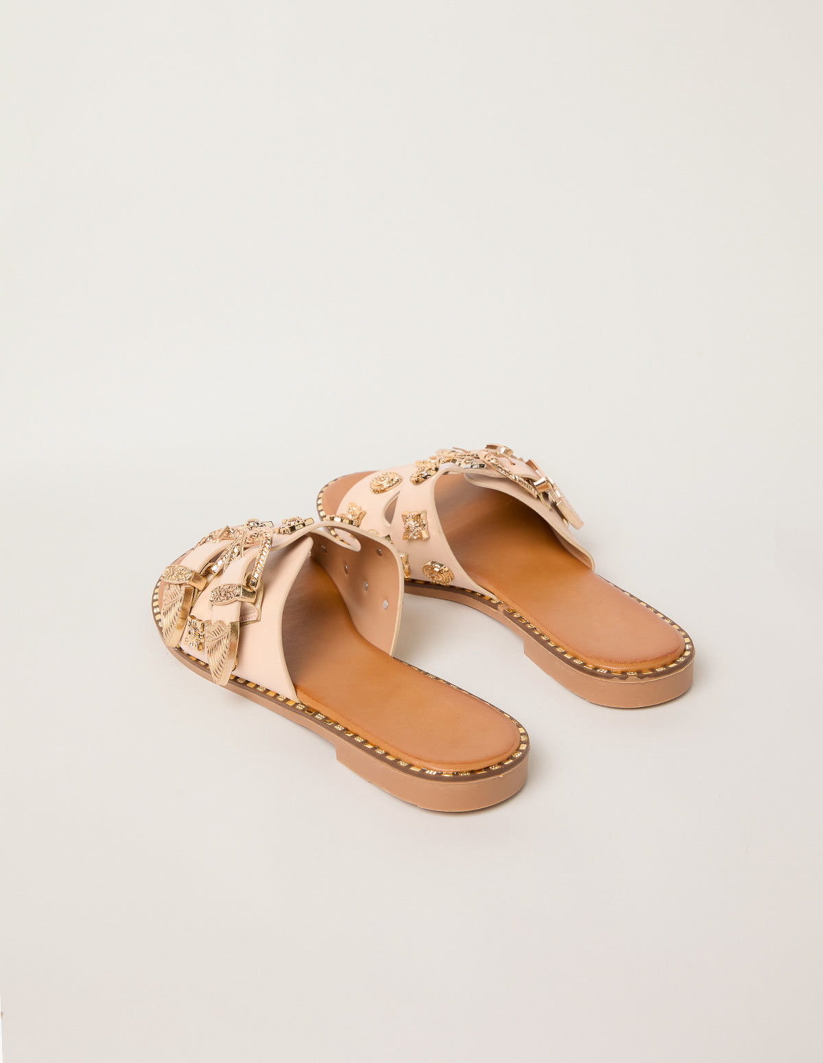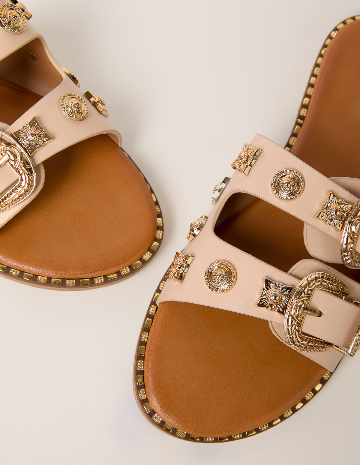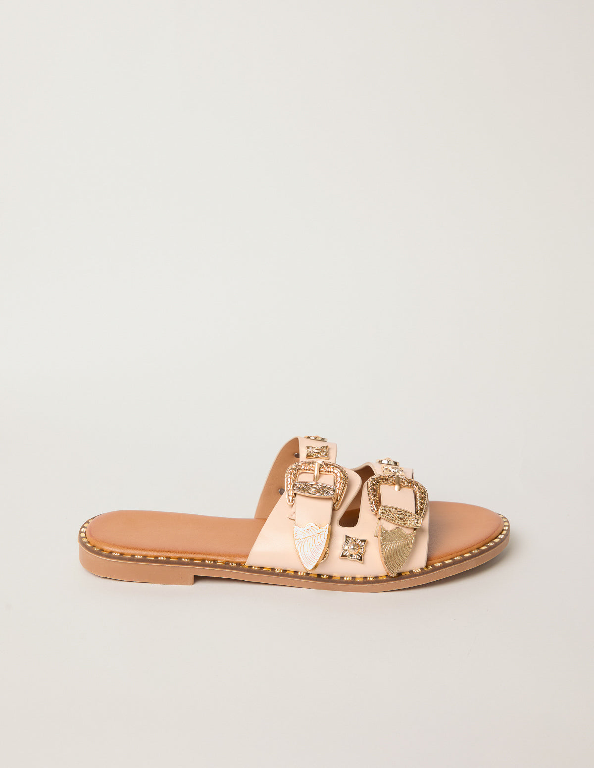 Streamline your summer staples this season with these studded buckle front sandals that offer timeless appeal.