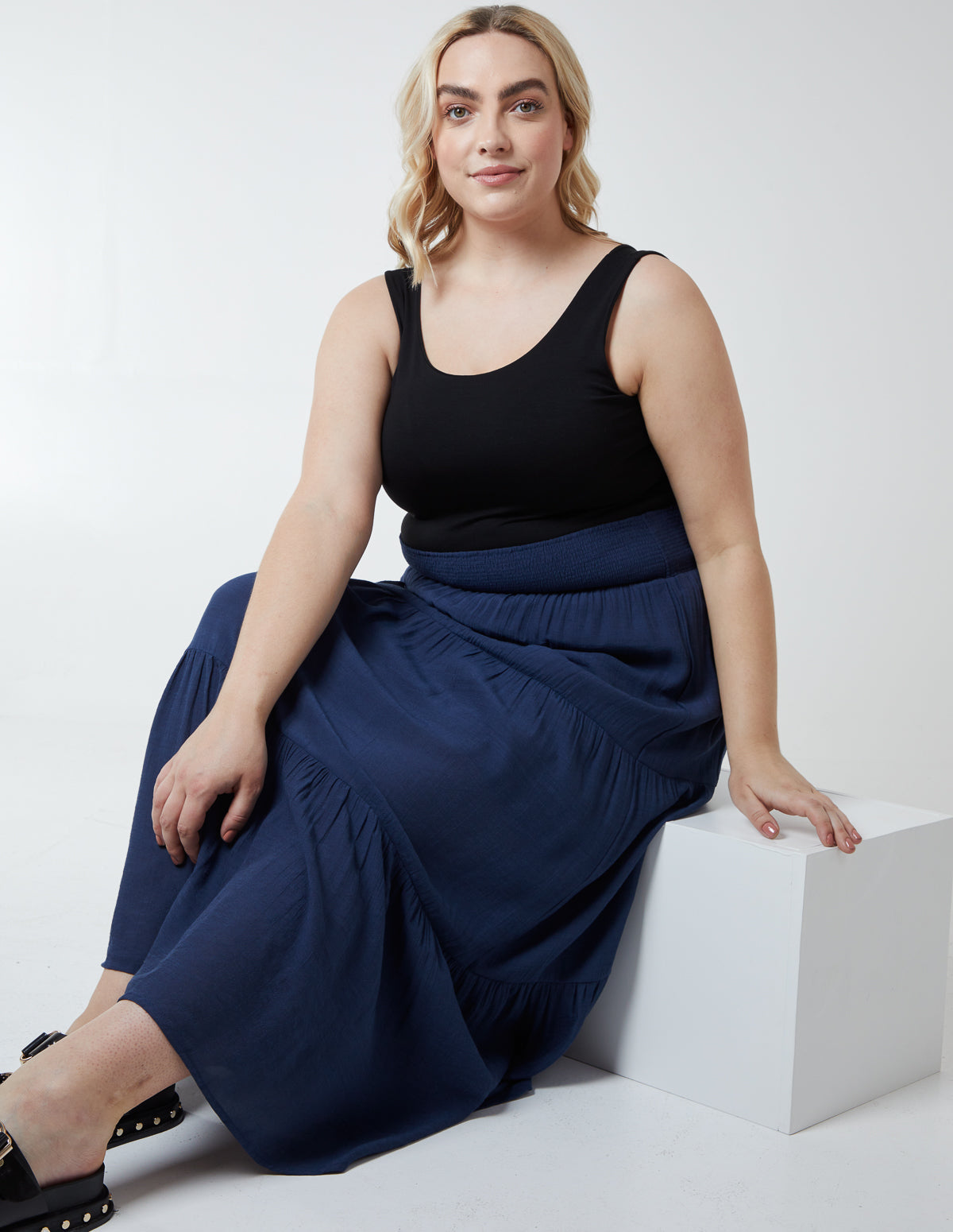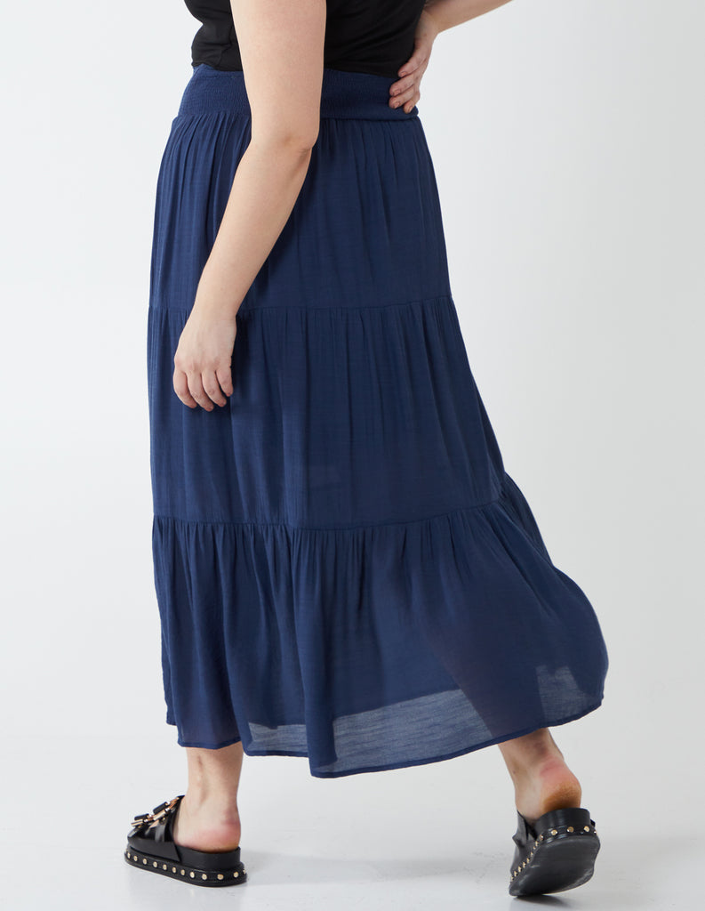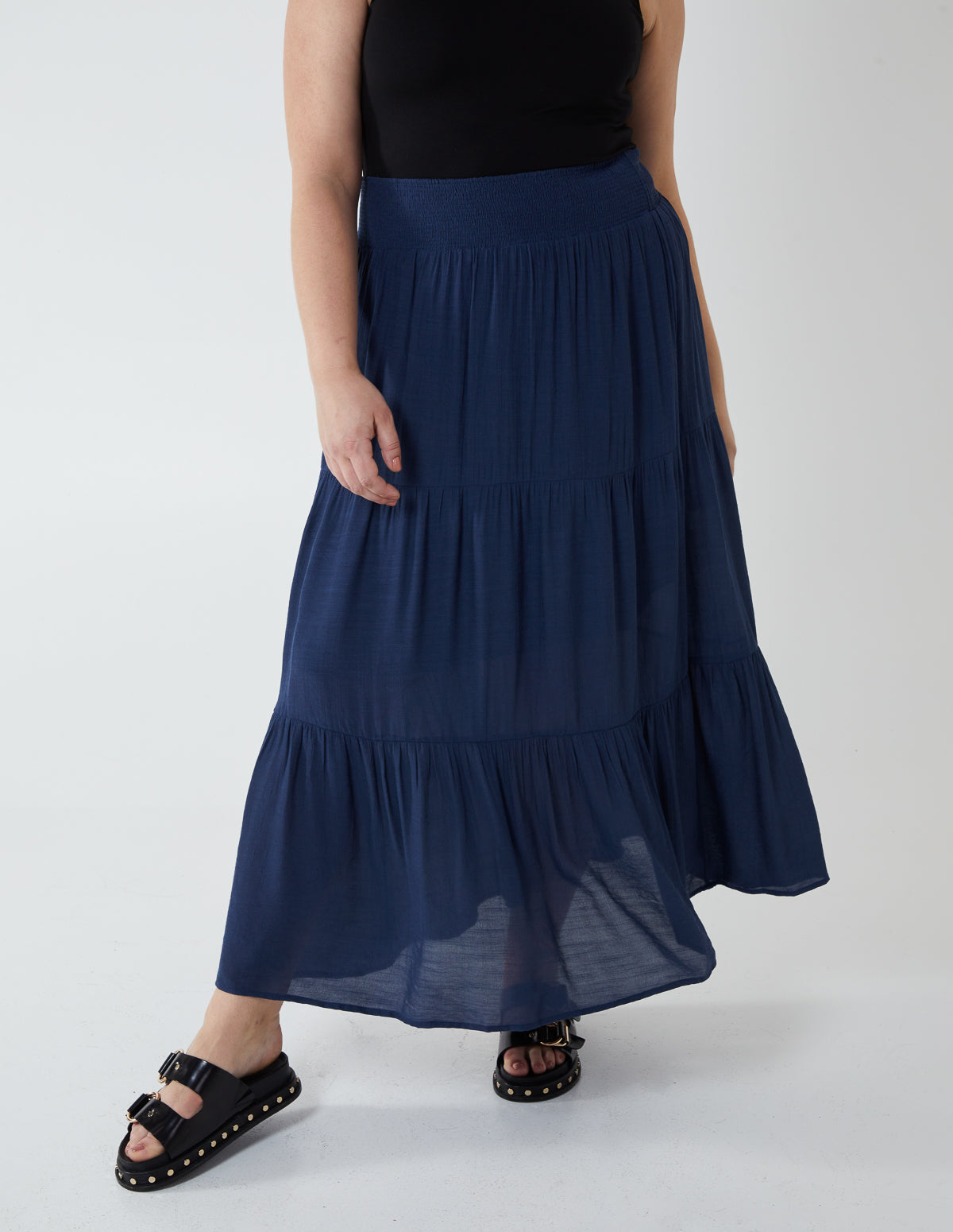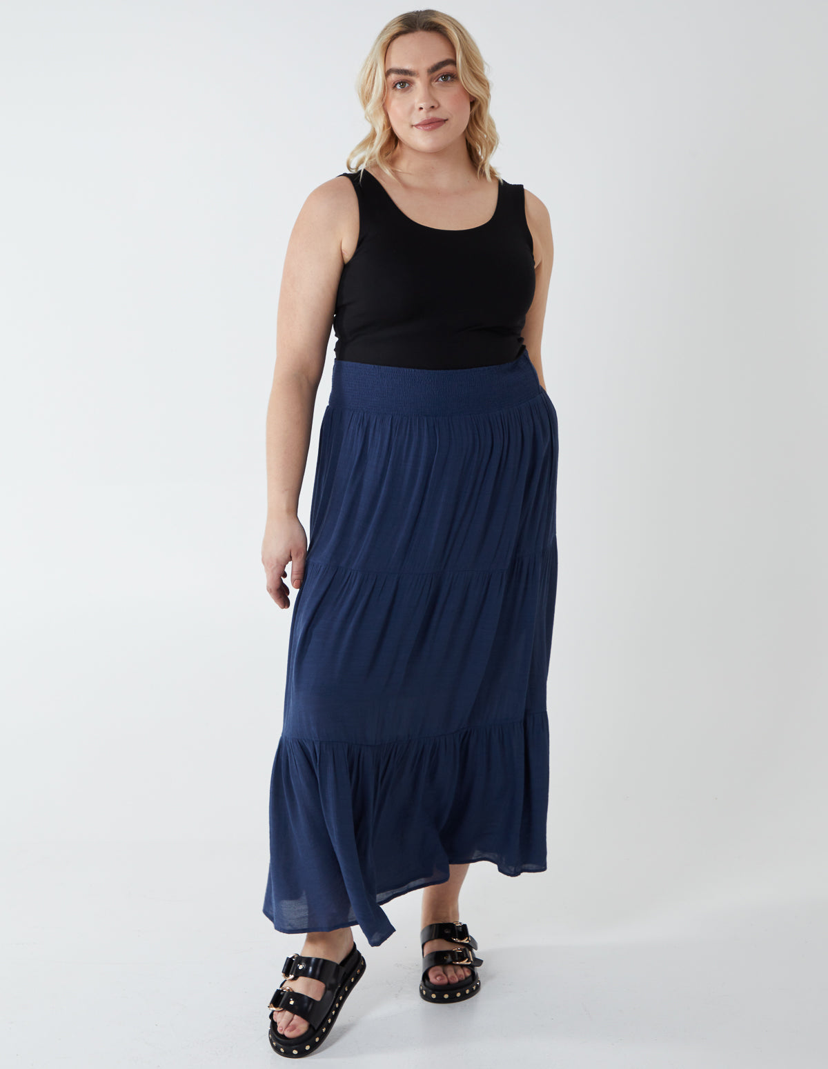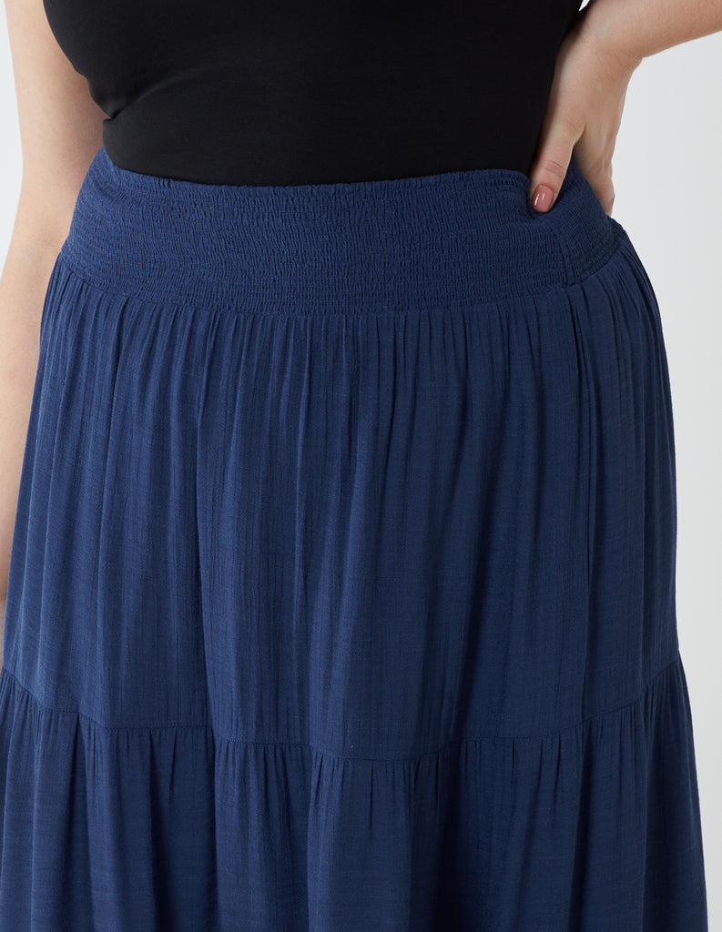 Go for comfort in this summer season. The maxi skirt features tiered fabric and an elastic waistband will make it easy to wear. This skirt is cozy that we cannot take it off. Perfect for everyday. Pair with a knit top or wedges.