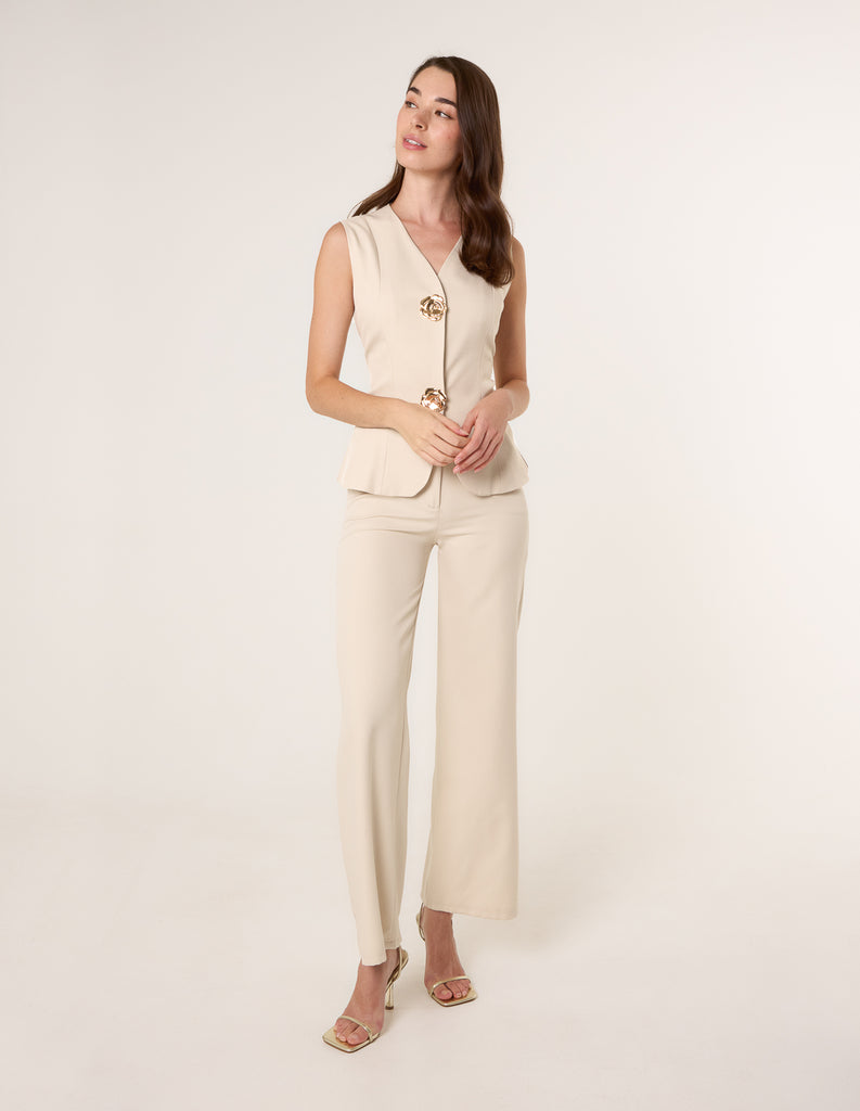 Tailored Flower Button Front Sleeveless Vest