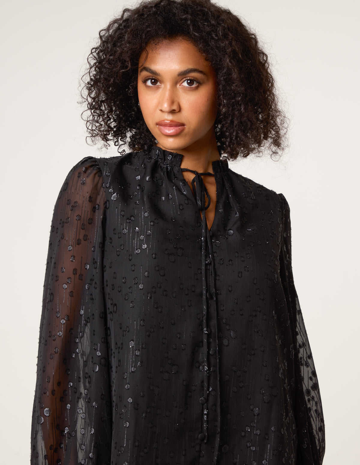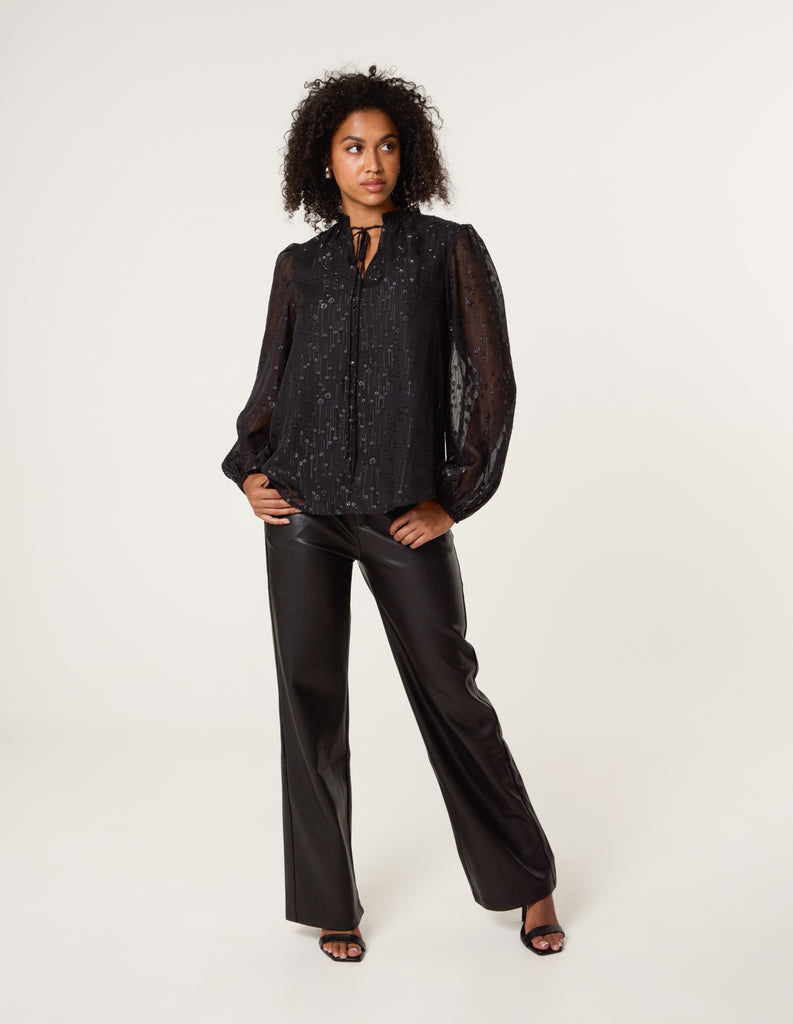 The perfect blouse that you can style for both the office and the weekend. Cute when teamed with sheer tights, a PU skirt and ankle boots.