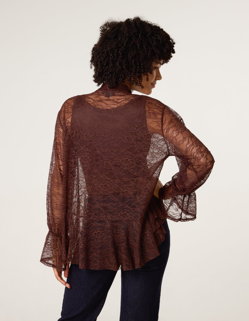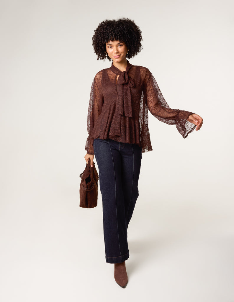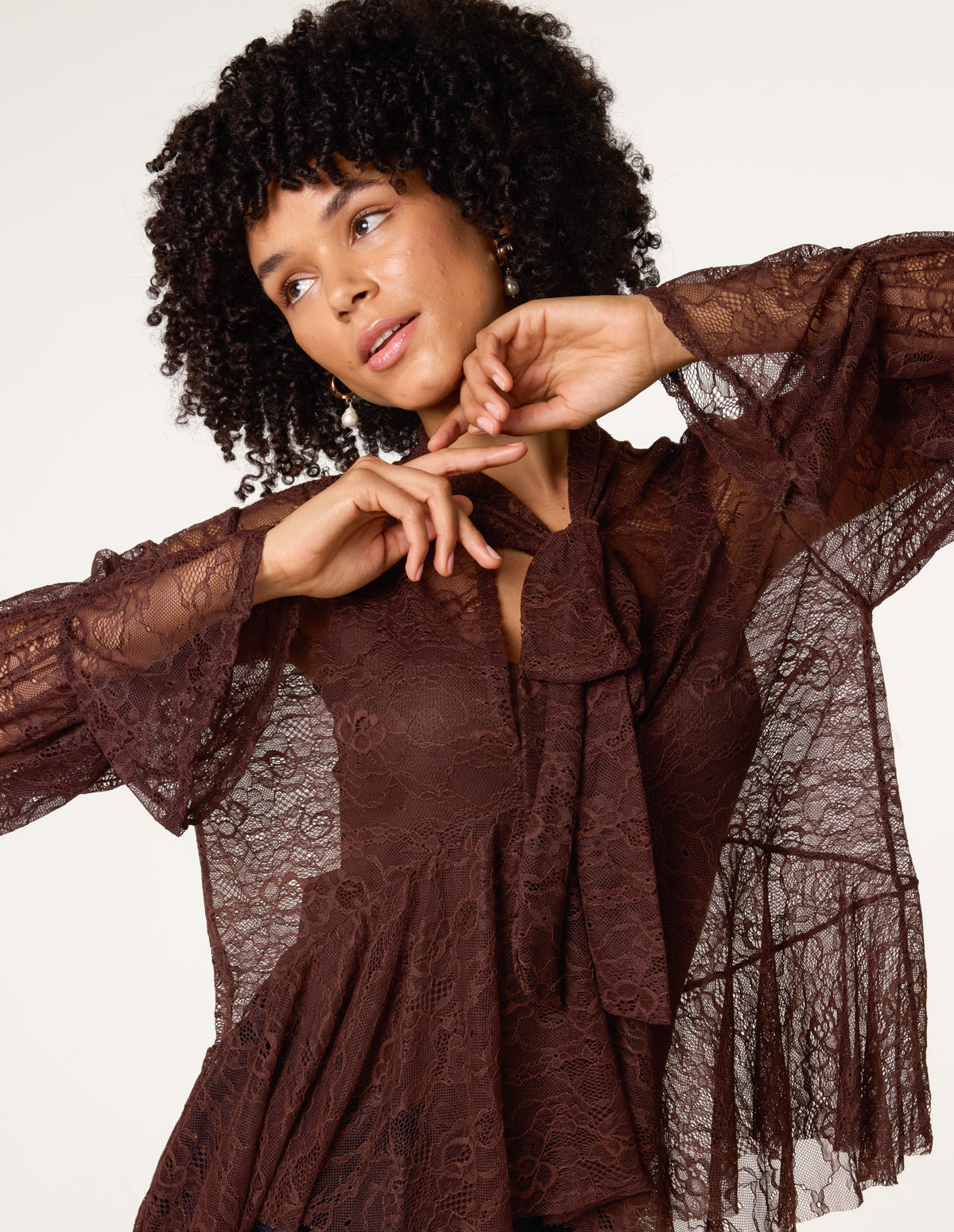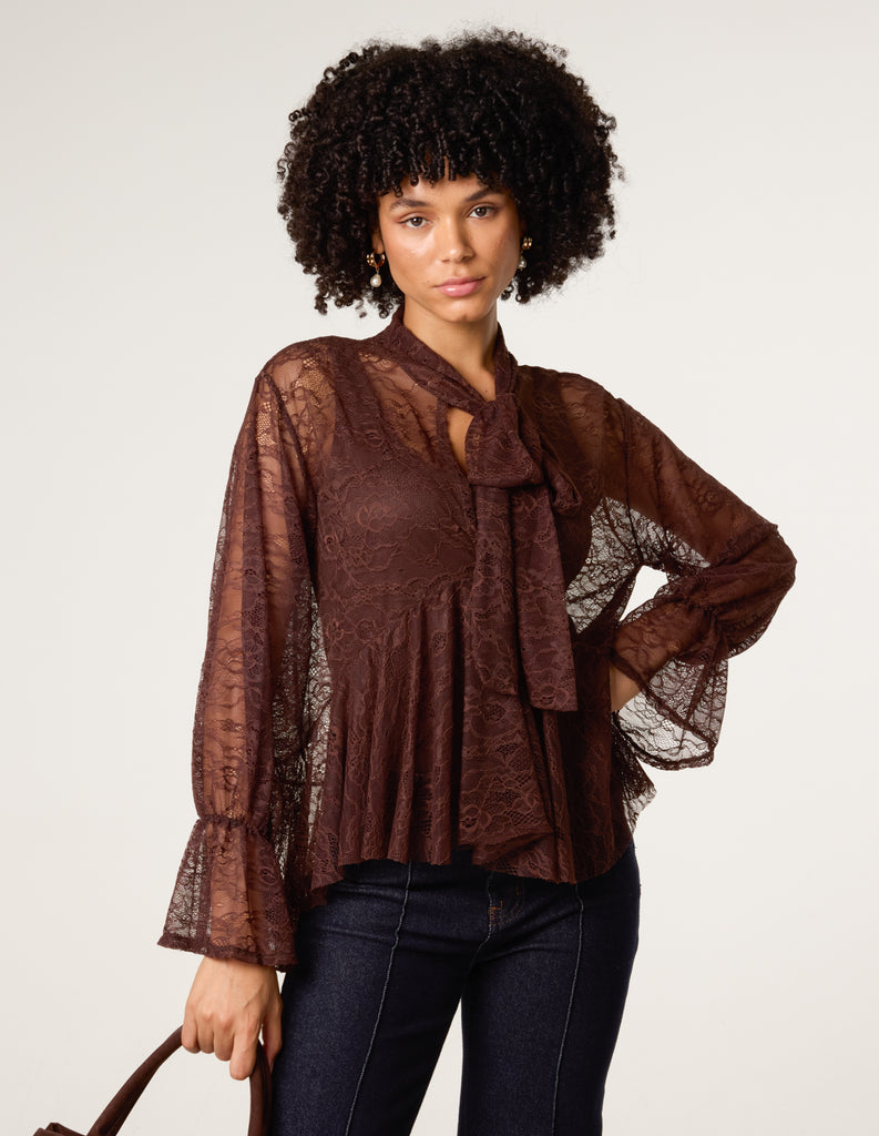 Bring a romantic touch to your look this season. This lace pussybow blouse it the perfect top to team with PU leggings on your next date night.