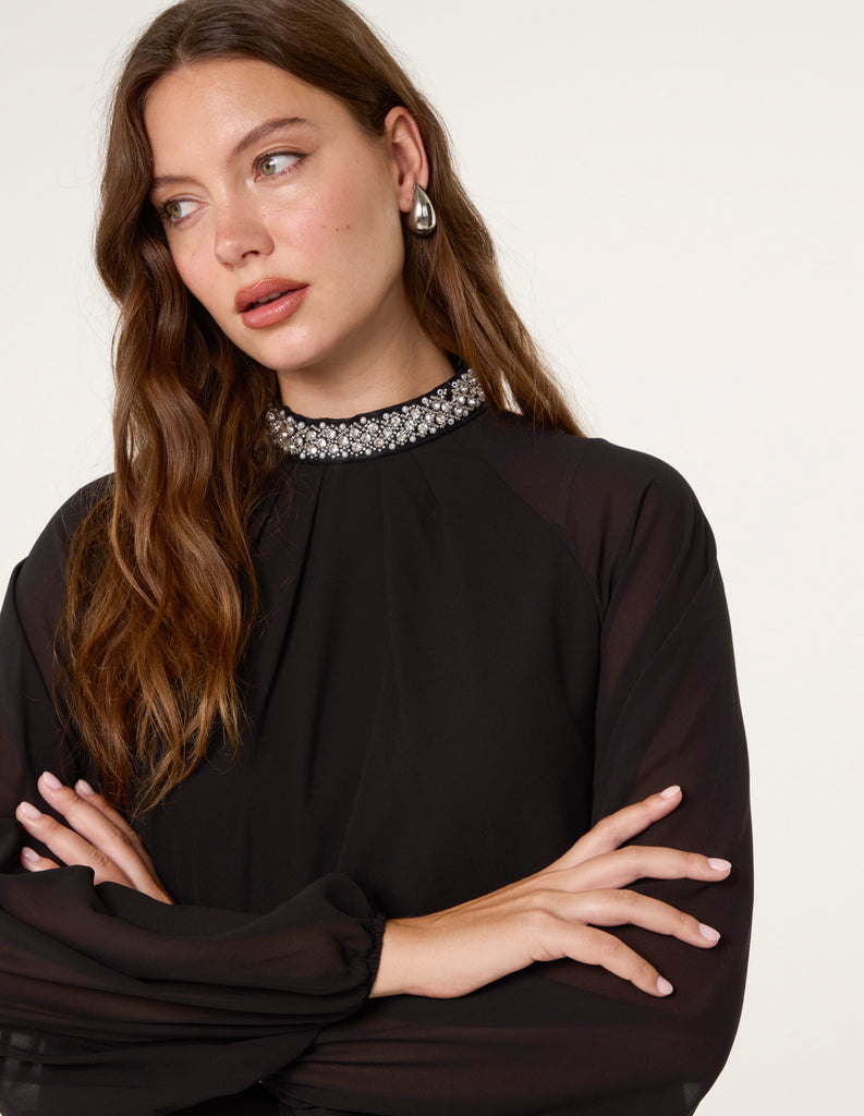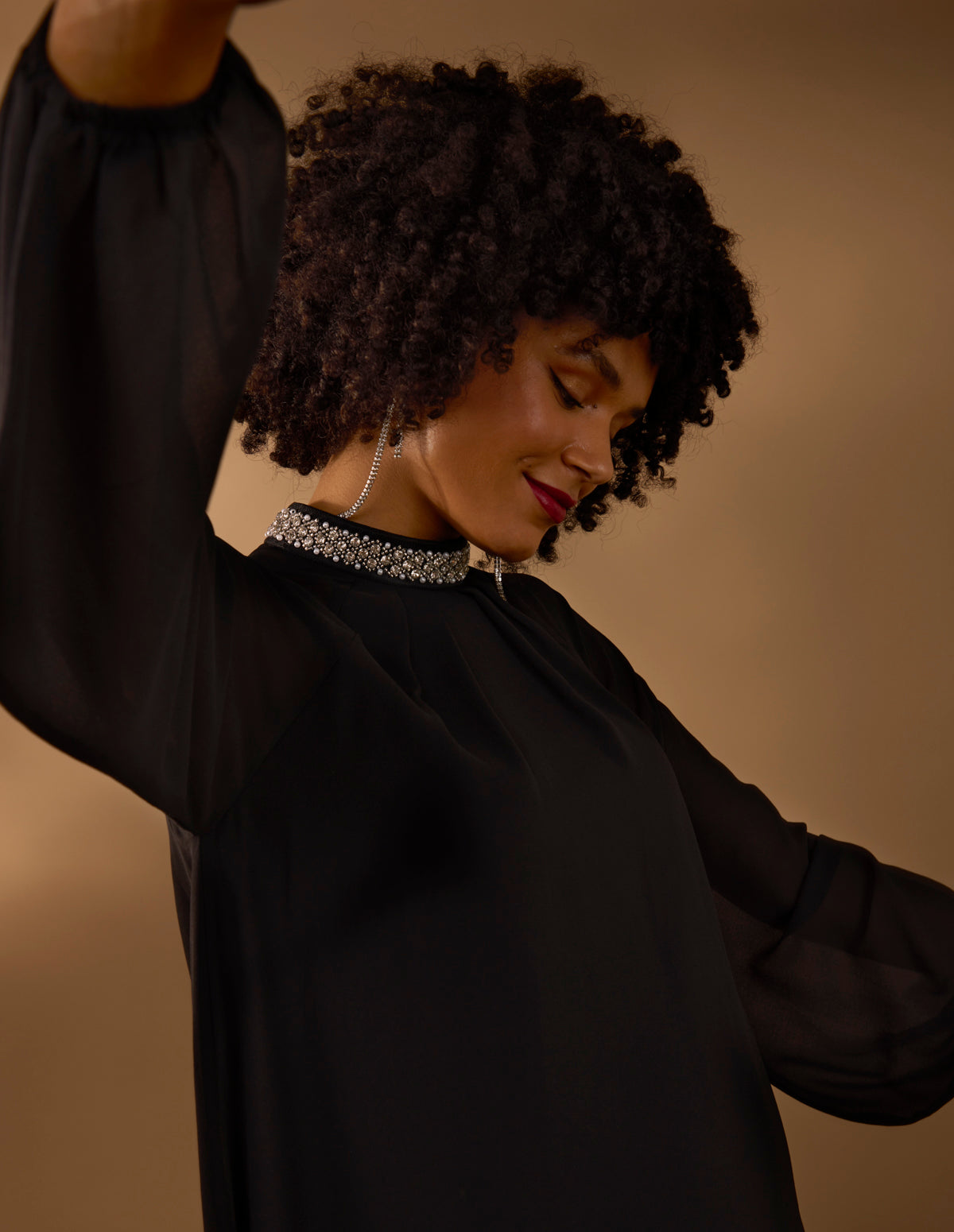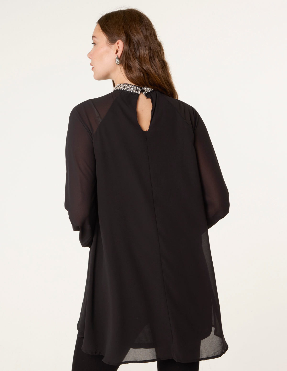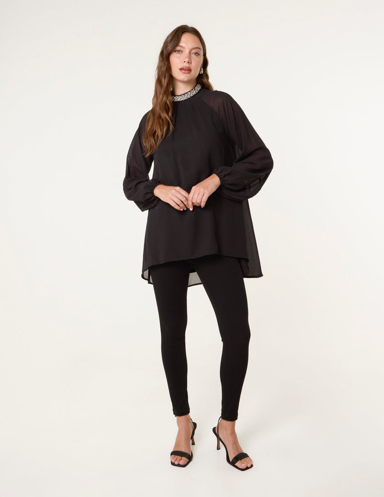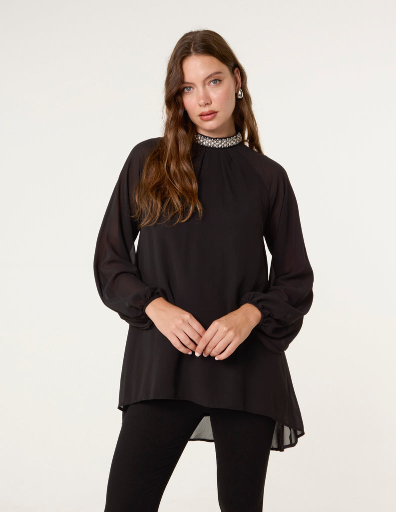 A glamourous blouse for the party season ahead with this round neck, oversized tunic top.