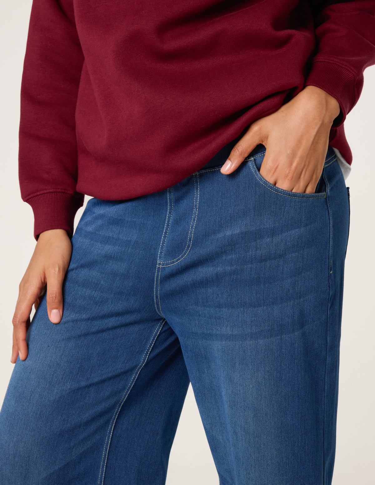 These wide leg jeans elasticated waist denim jeans are a wardrobe staple without a fashion expiry date. Super comfy and easily styled for any occasion.