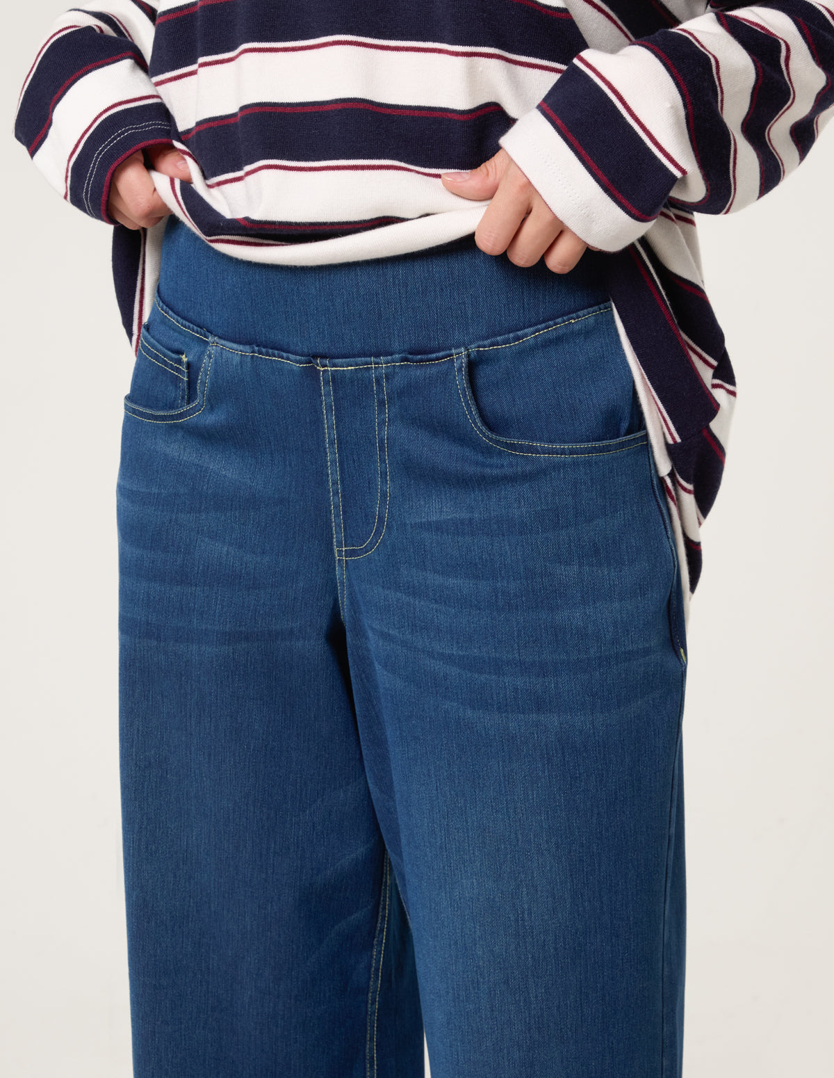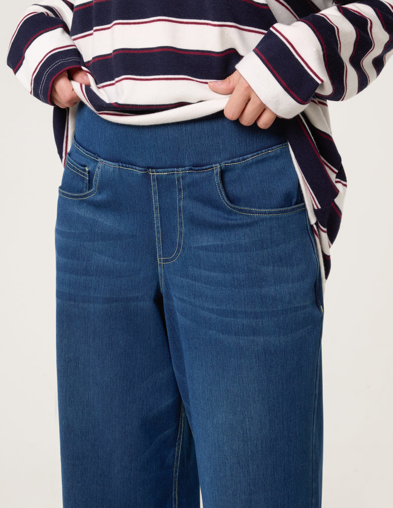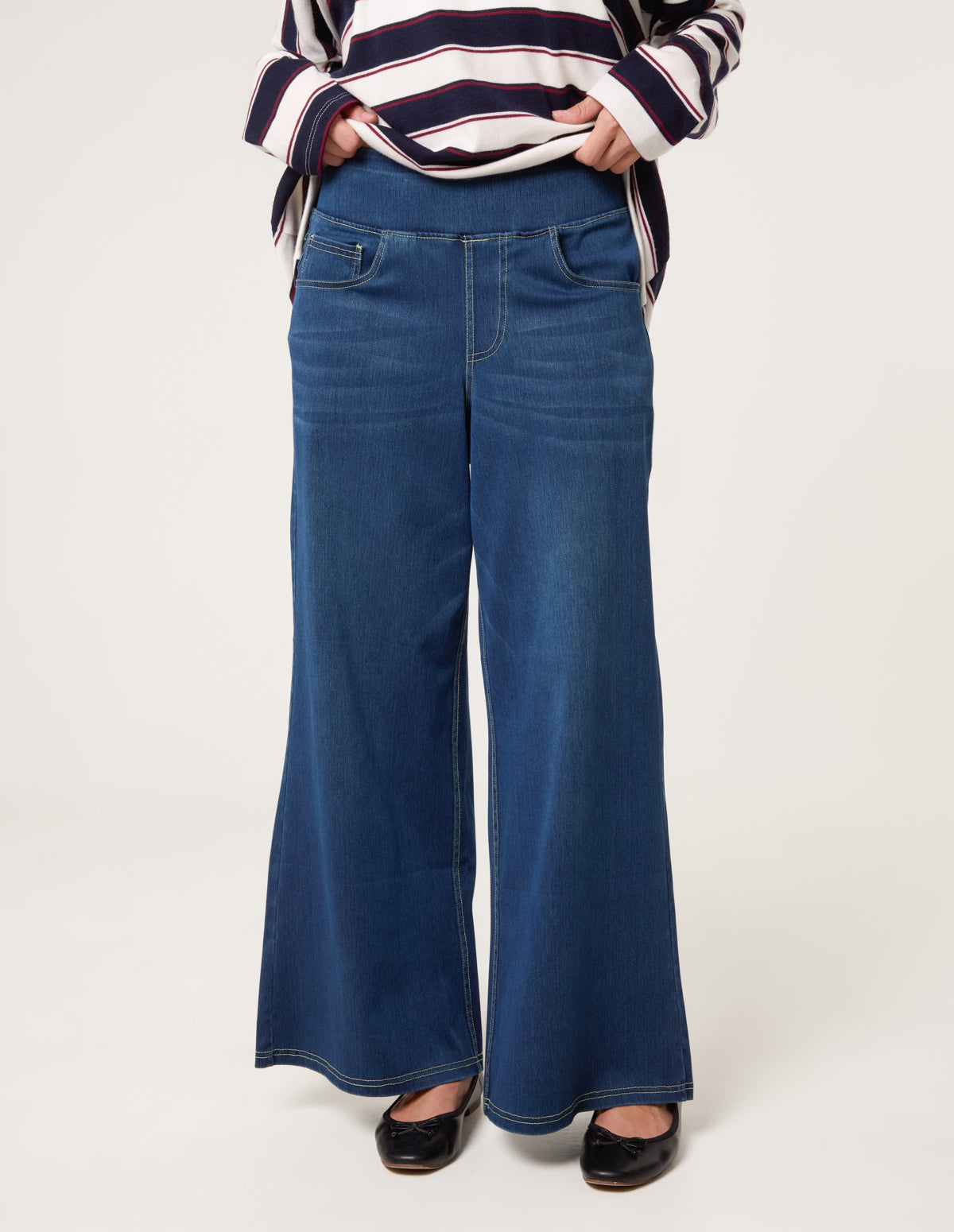 These denim trousers will make a comfy addition to your wardrobe thanks to the stretchy finish, relaxed fit and wide legs.