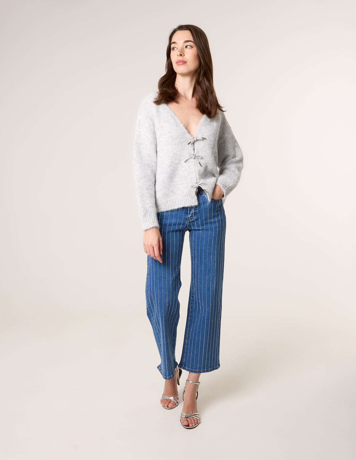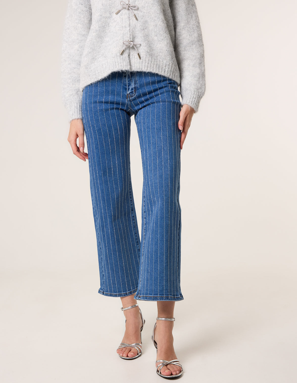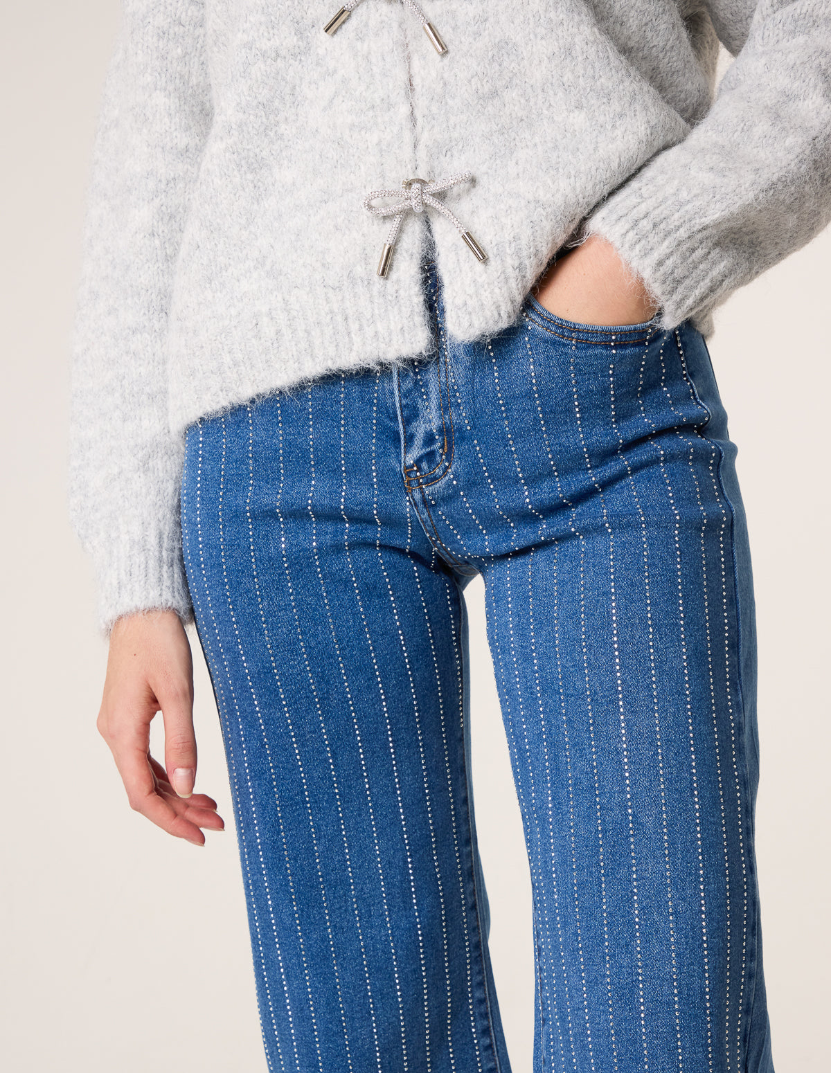Give it a twist to your usual denim with this fun option. Featuring vertical diamante stripes will make your evening look a winner.