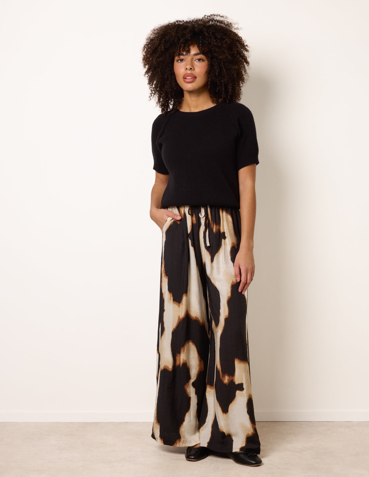Easy to throw on and go whatever your plans, these zebra print trousers are designed in a lightweight fabric. Team with a basic black vest, and buckle sandals.