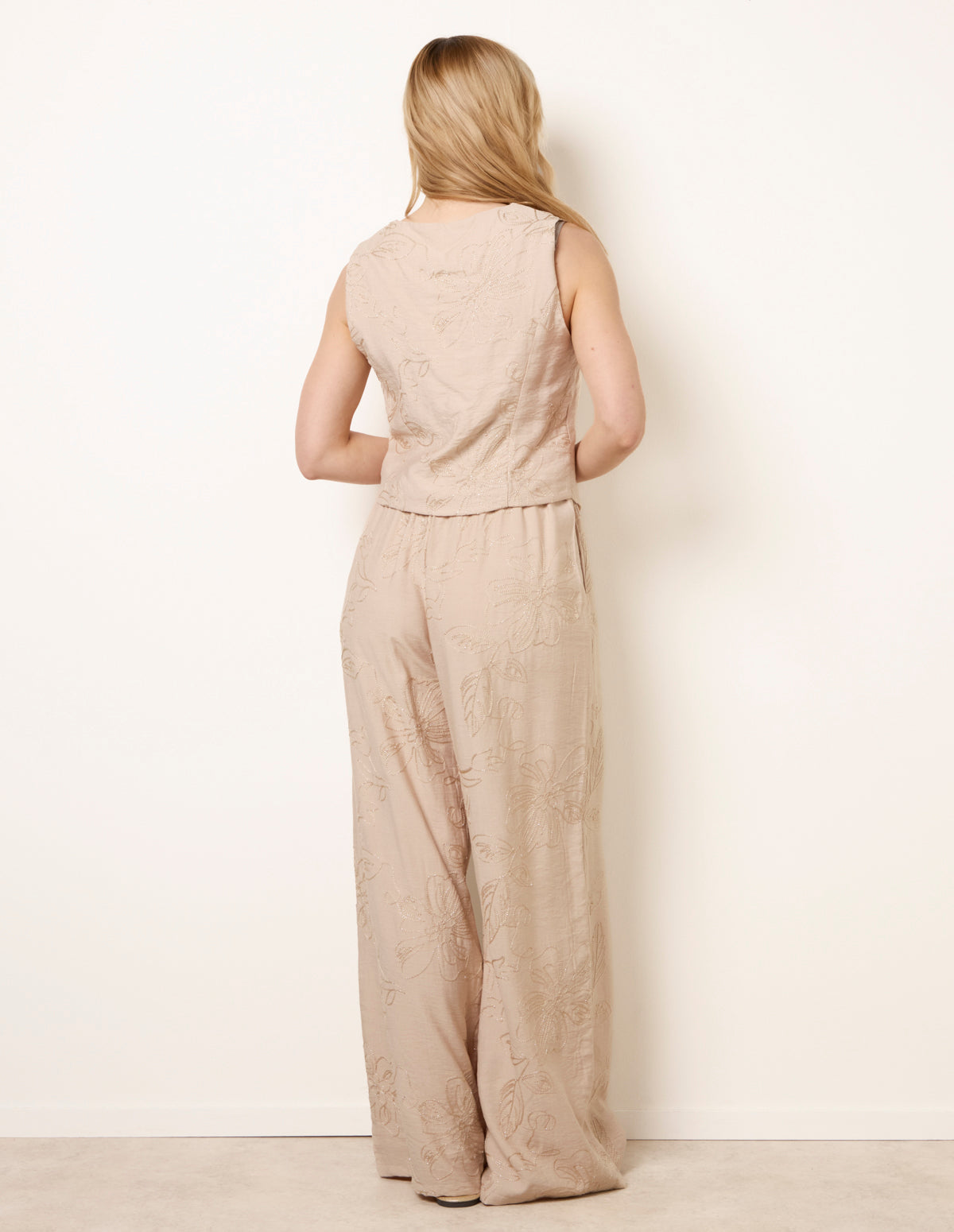 Add a touch of glam and luxury to your summertime co-ords. This beautiful, detailed embroidery set is perfect for cool sunset evenings.