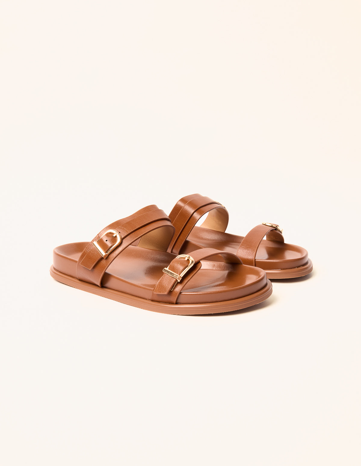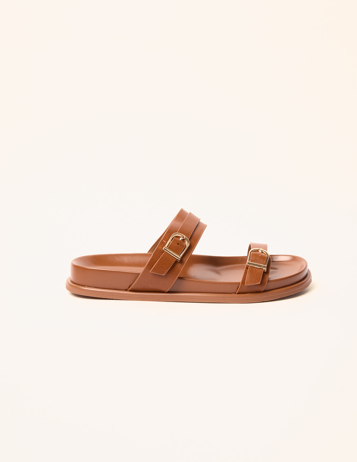 The buckle detailed slip on sandals are perfect for casual days in the warm weather.