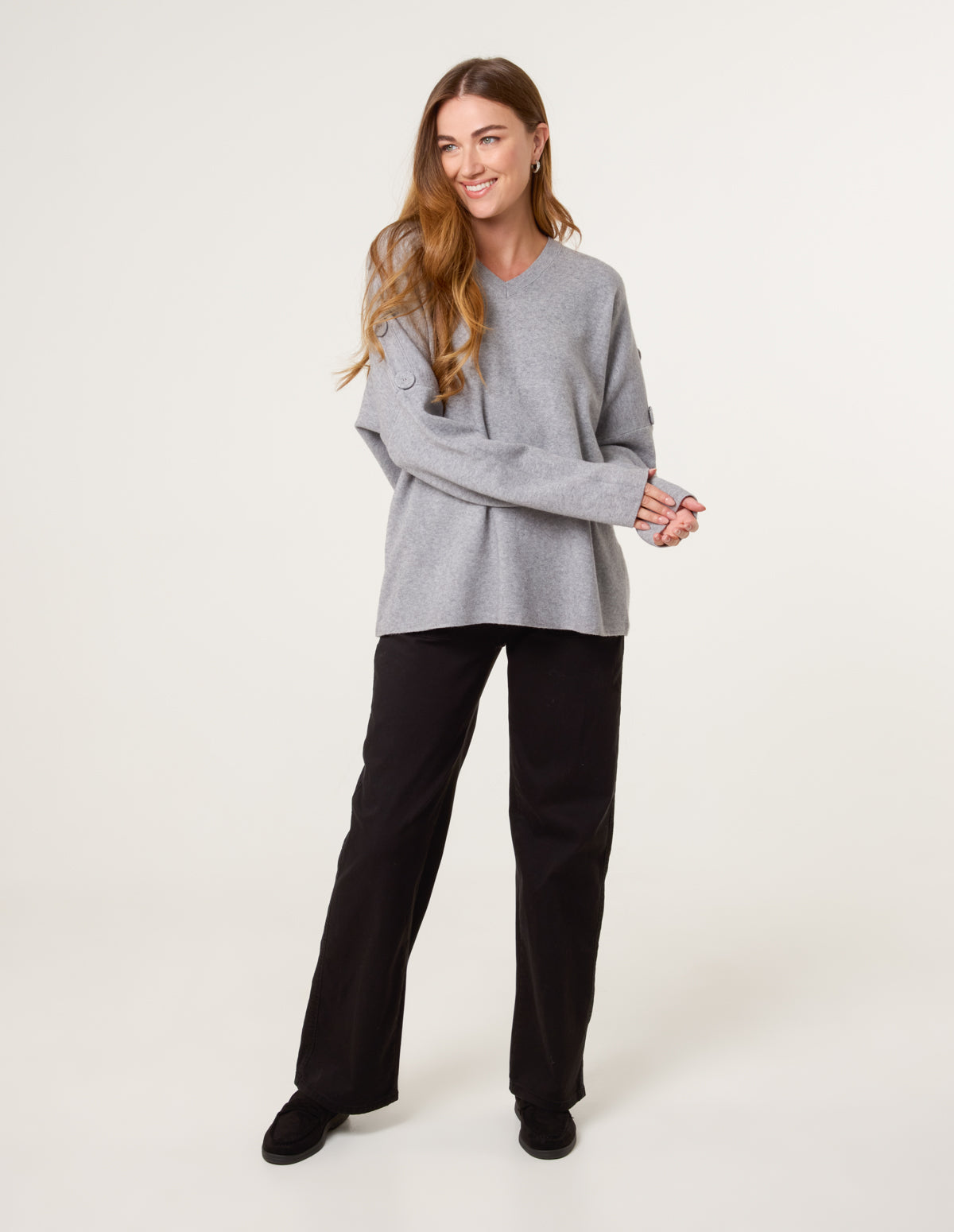A button detailed jumper cosy enough for you this season. Team this with fitted black jeans and boots.