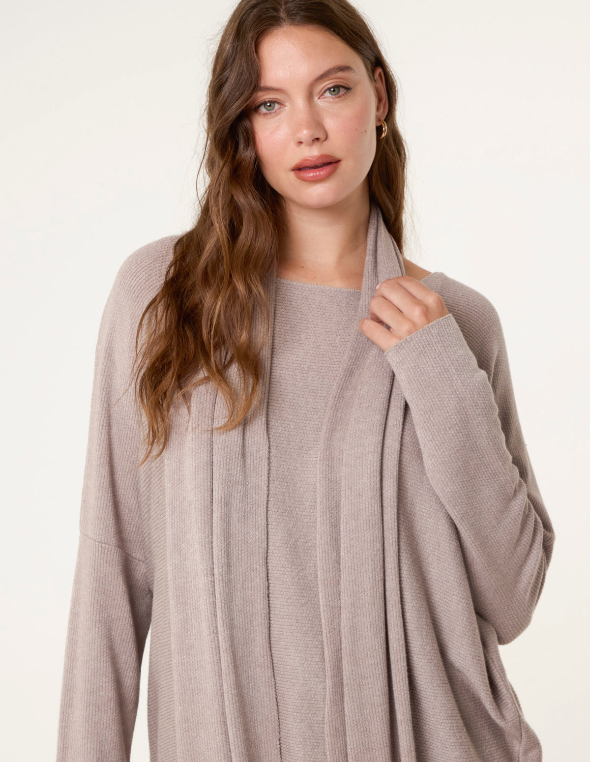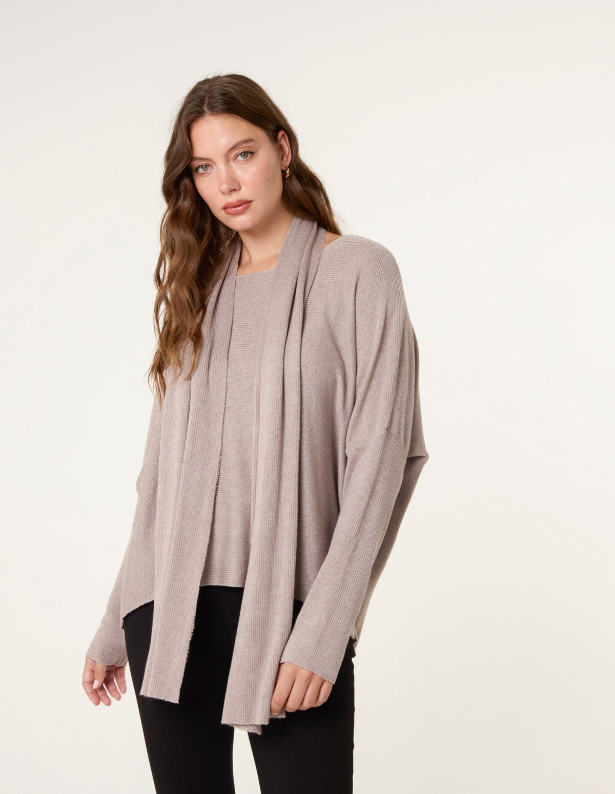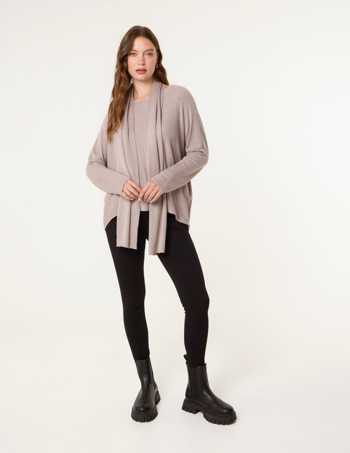 This season wrap yourself in relaxed style. Team this 2 in 1 jumper with leggings and pumps.