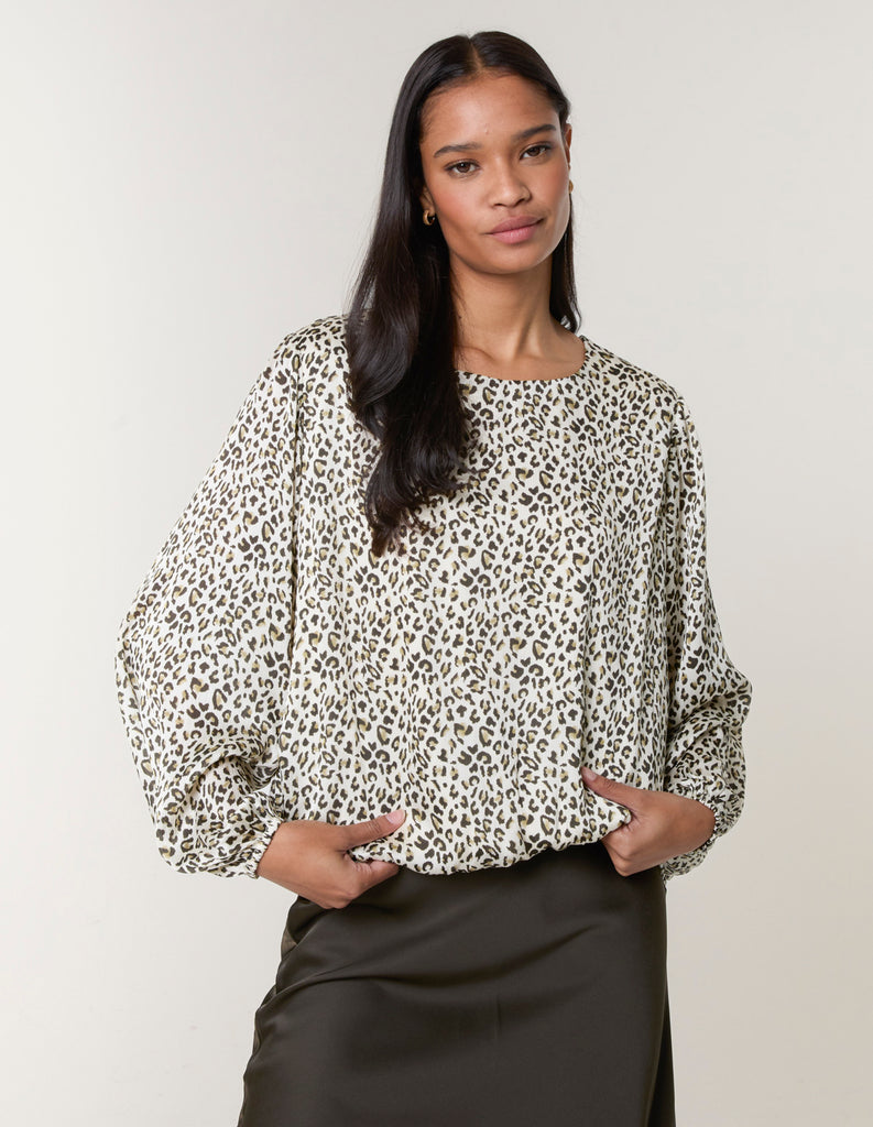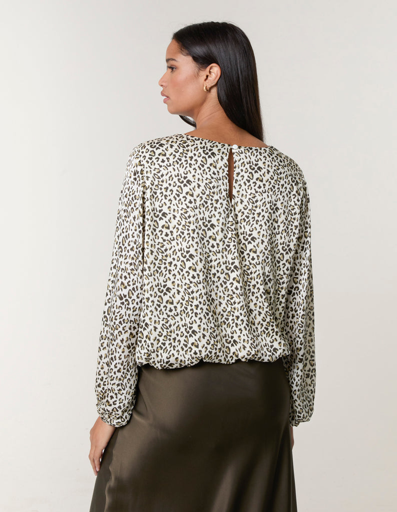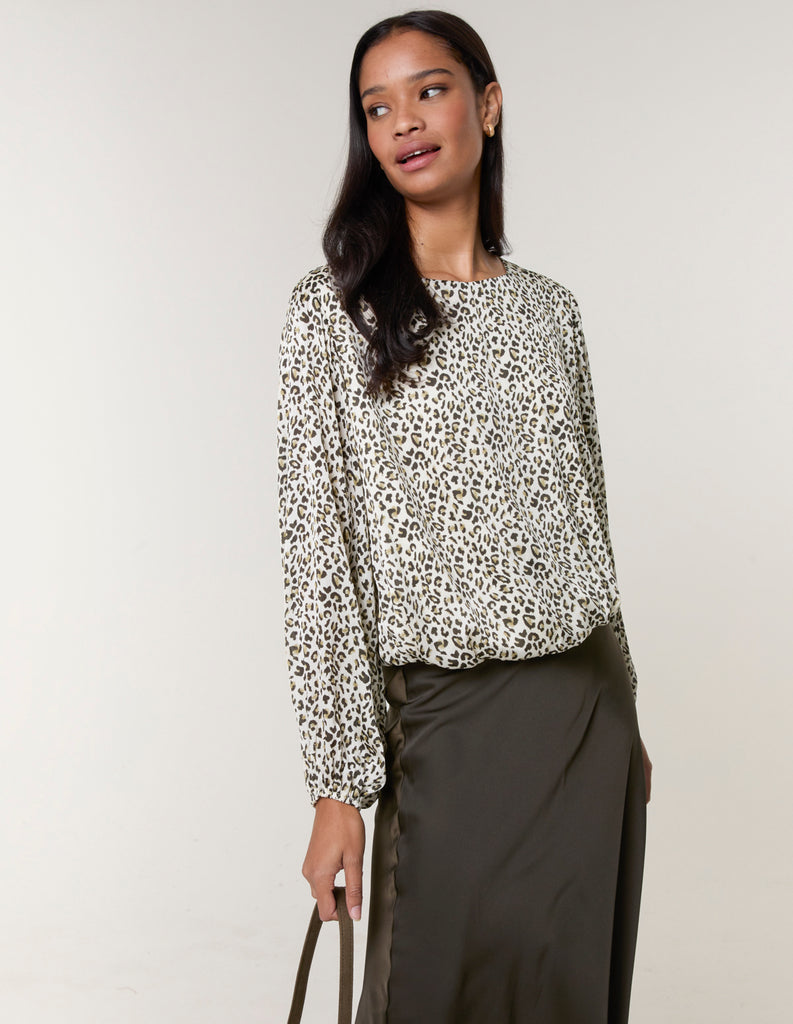 Leopard Print Elasticated Hem Blouse