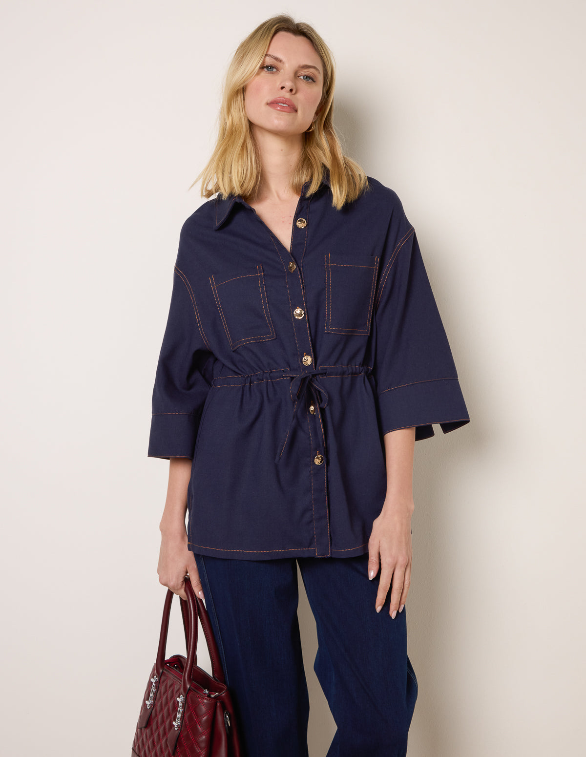 Embrace everyday effortless style with this denim shirt, featuring a boxy fit and classic button-down design. Pair it with white denim jeans.