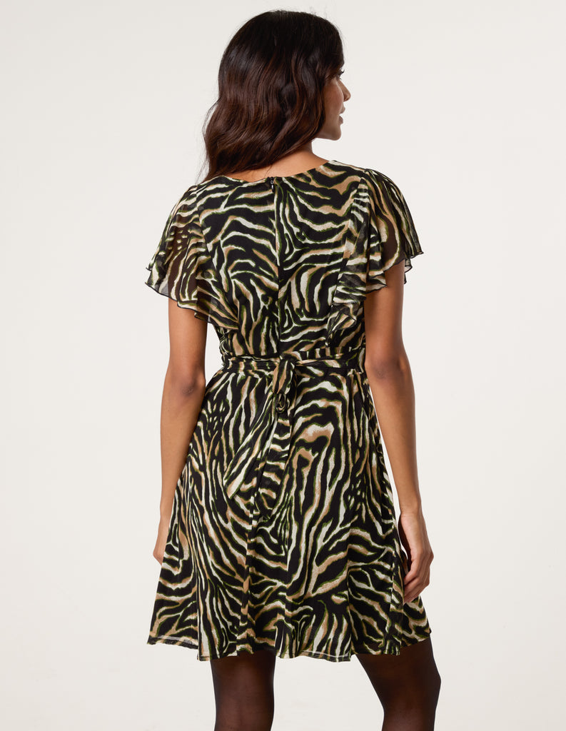 Animal Print Frill V Neck Mini Mesh Dress