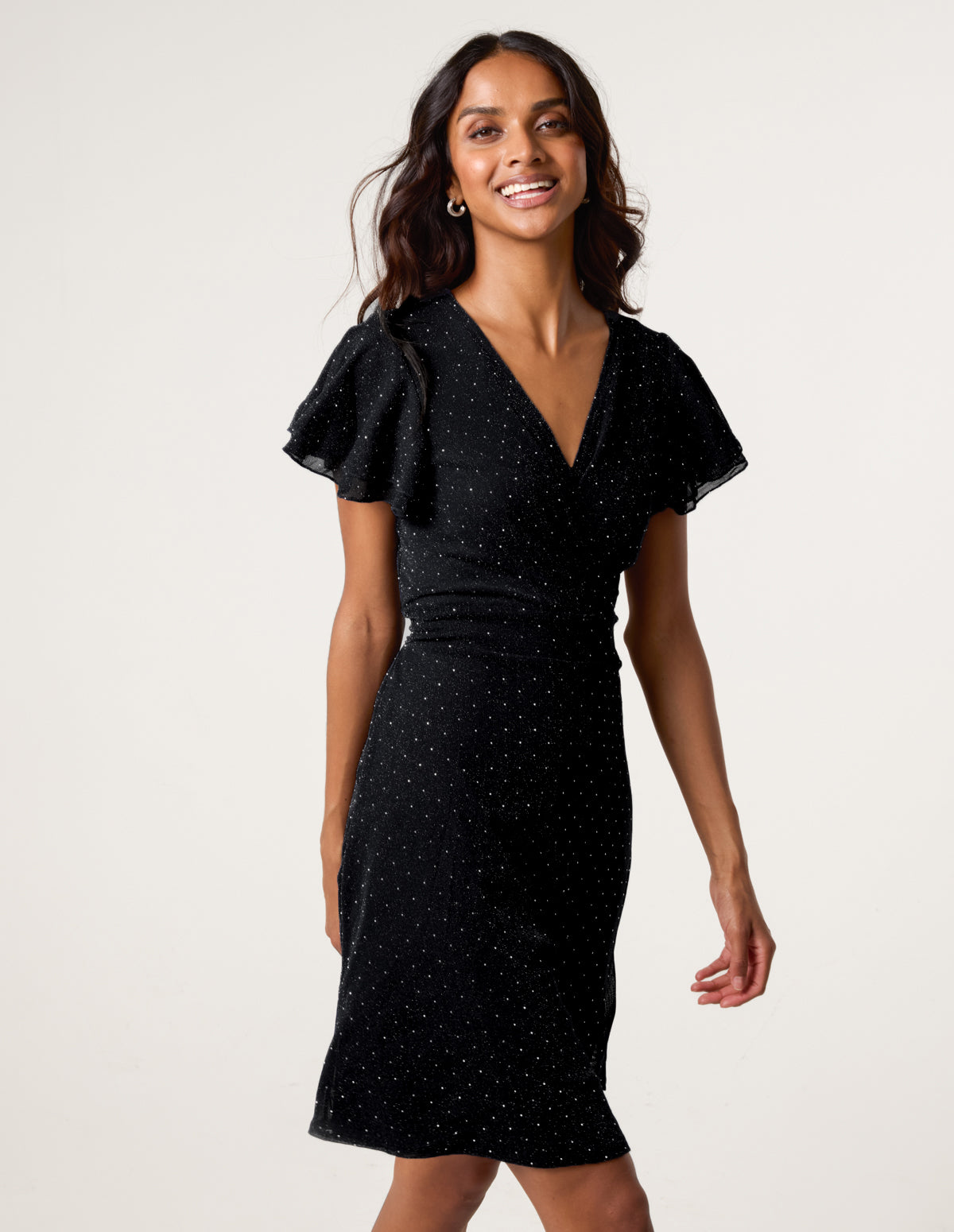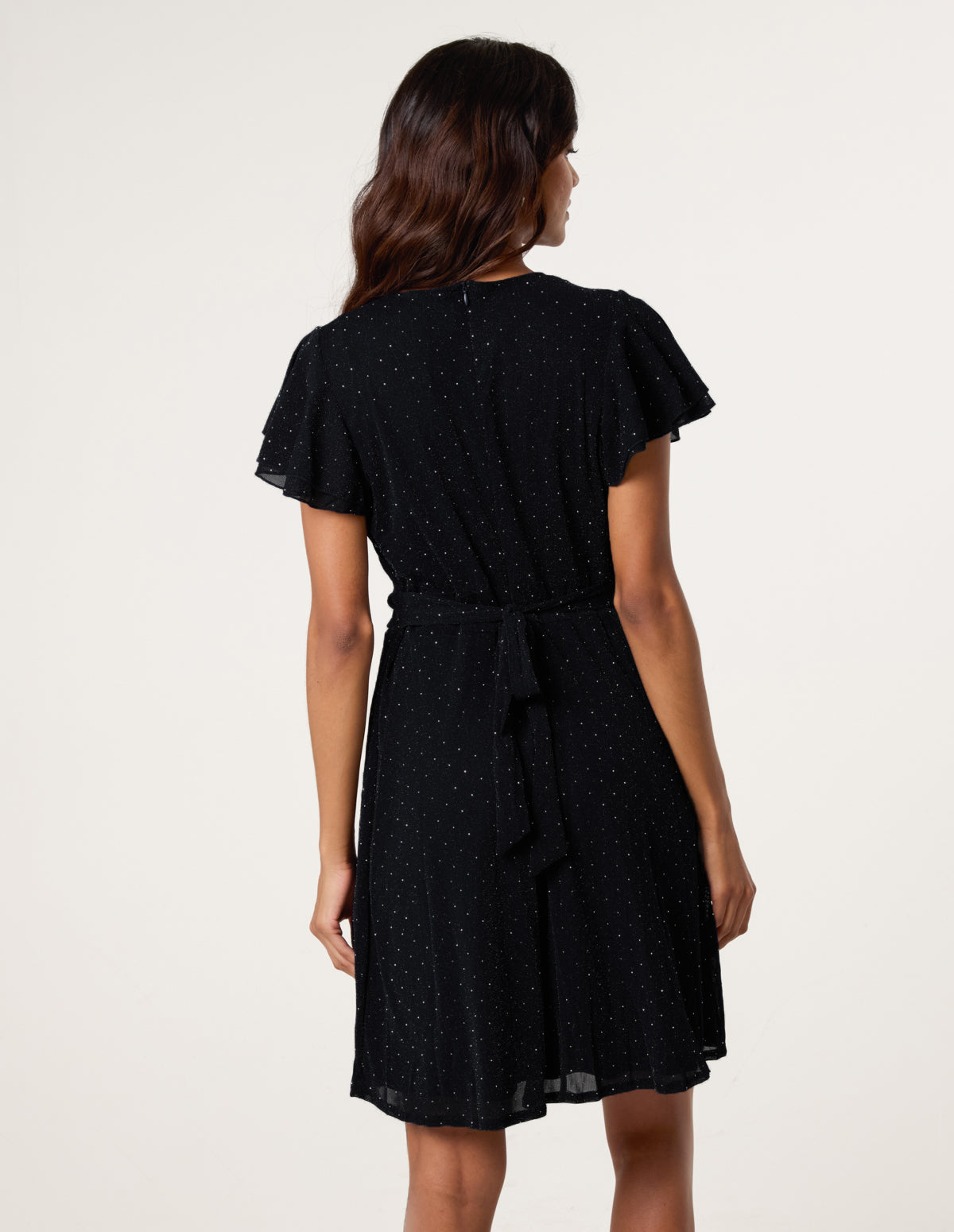 Eye-catching for all the right reason, team this stud detailed wrap front dress with sheer tights and silver court heels for the ultimate partywear look.