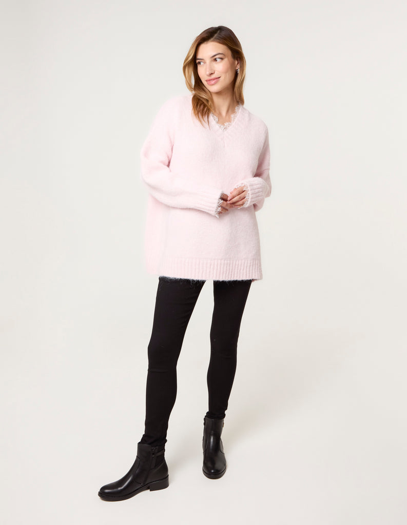 Lace Trim V Neck Jumper