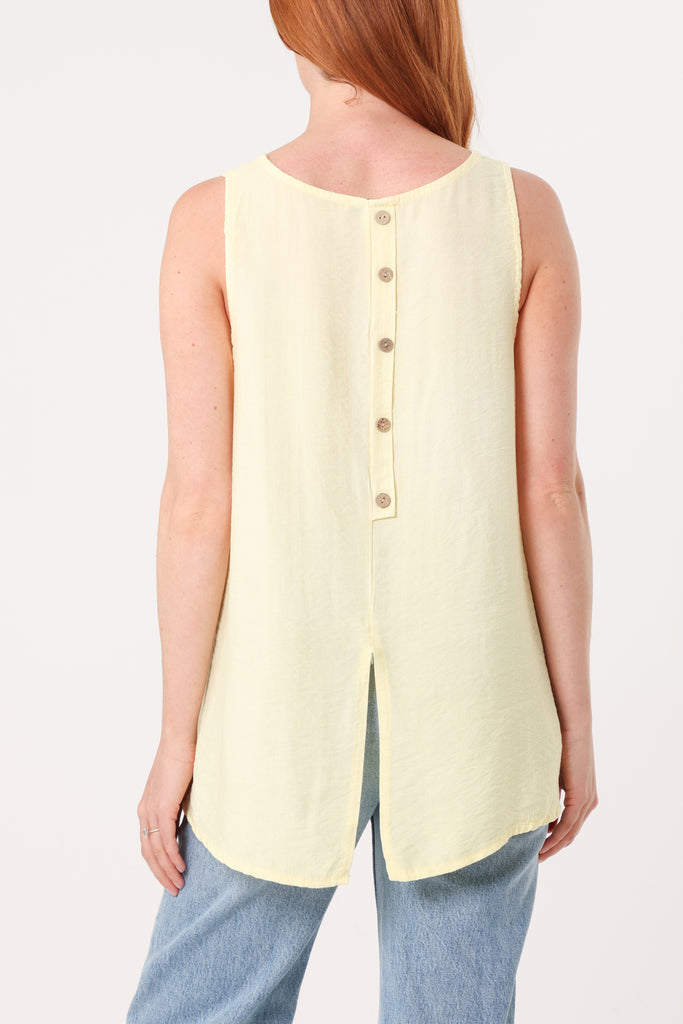 Sleeveless lightweight top with button details down the back. Pair with jeans.