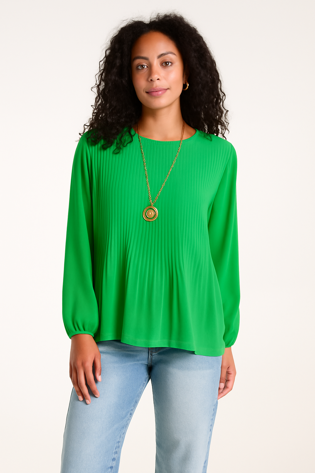 Get ready for spring with this classic pleated chiffon top. The bold colour will brighten up any occasion whilst keeping you looking fresh and on trend.