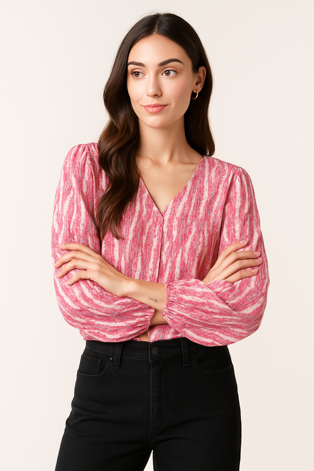 The ultimate blouse every wardrobe will be craving this season! This fun, printed blouse is simply perfect for every kind of occasion. Team with flared trousers and pumps for the ideal office wear outfit.