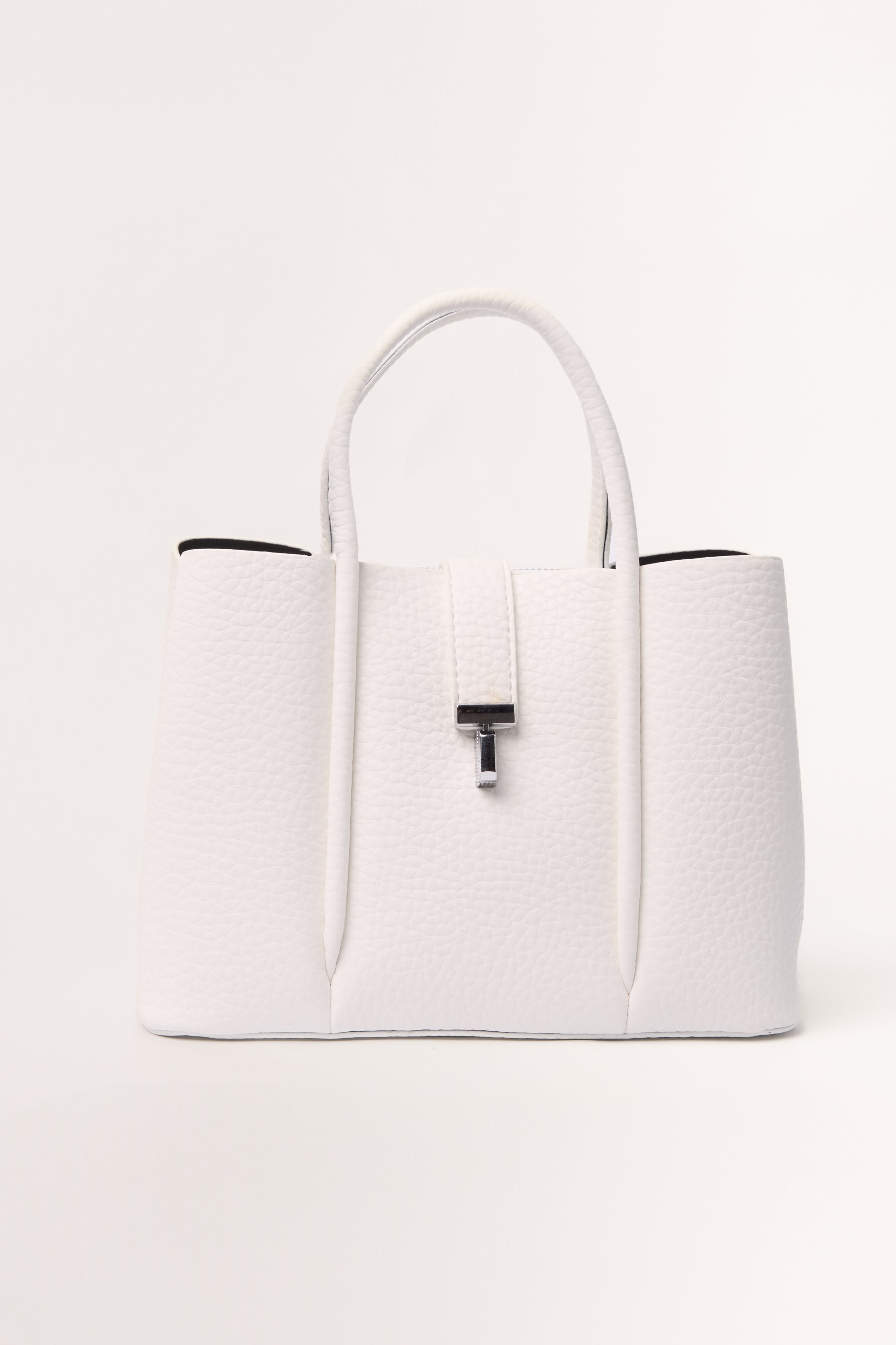 This top handle bag is made for everyday use. With it's divided sections ensure all your belongings stay organised complete with a tan, suedette texture.