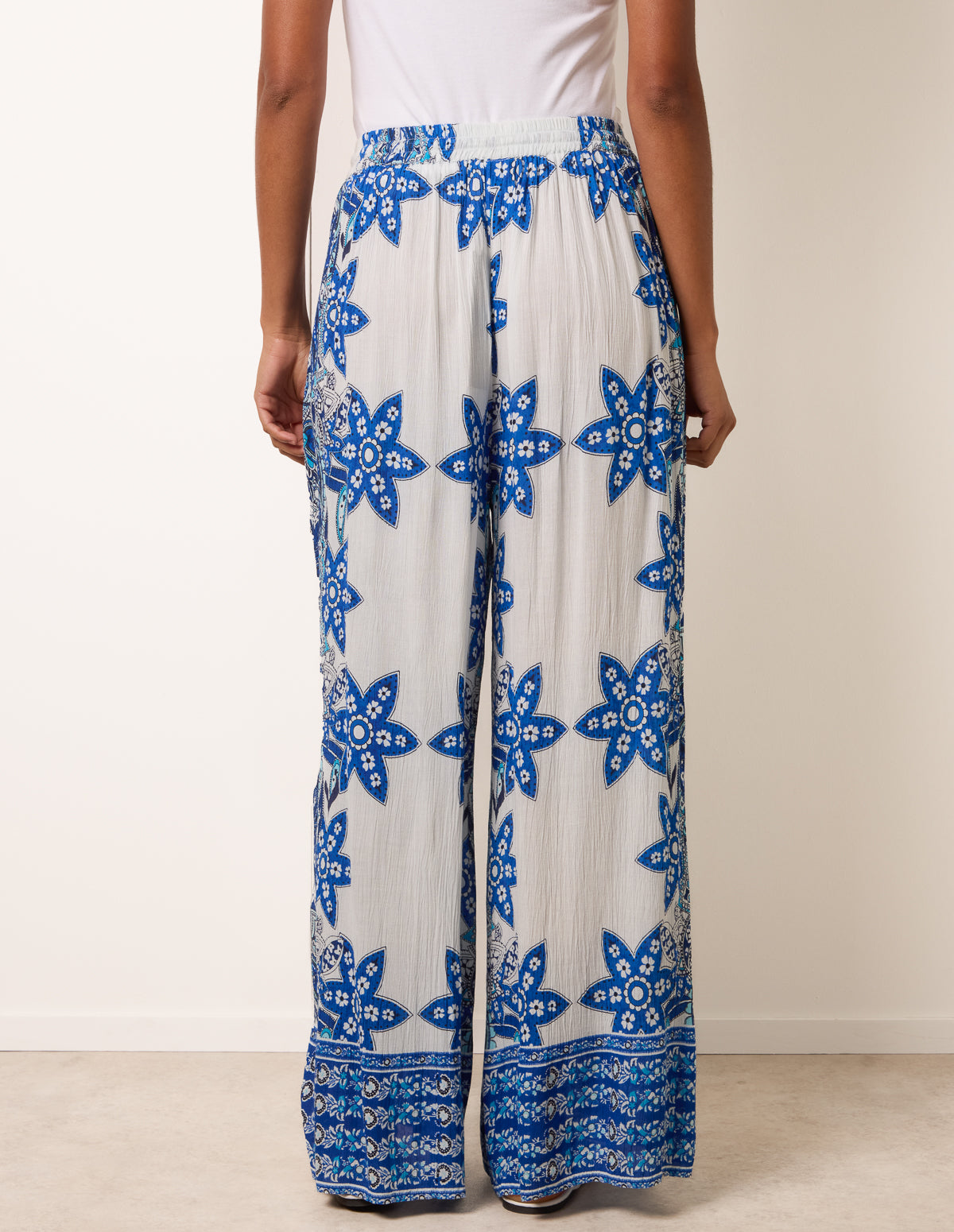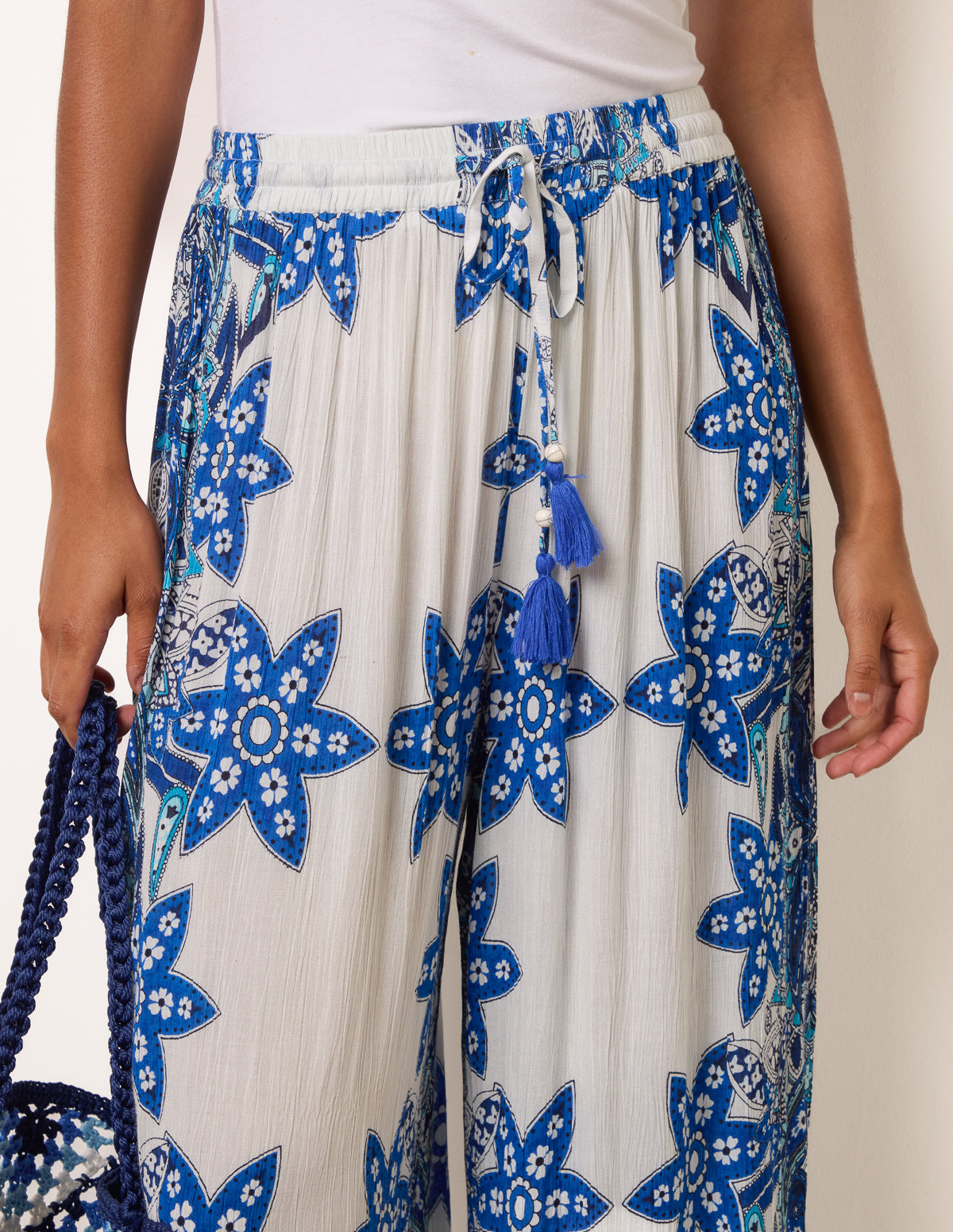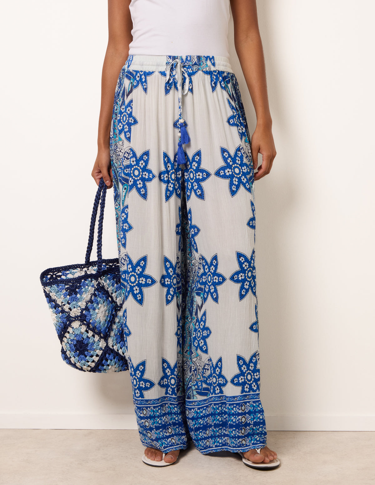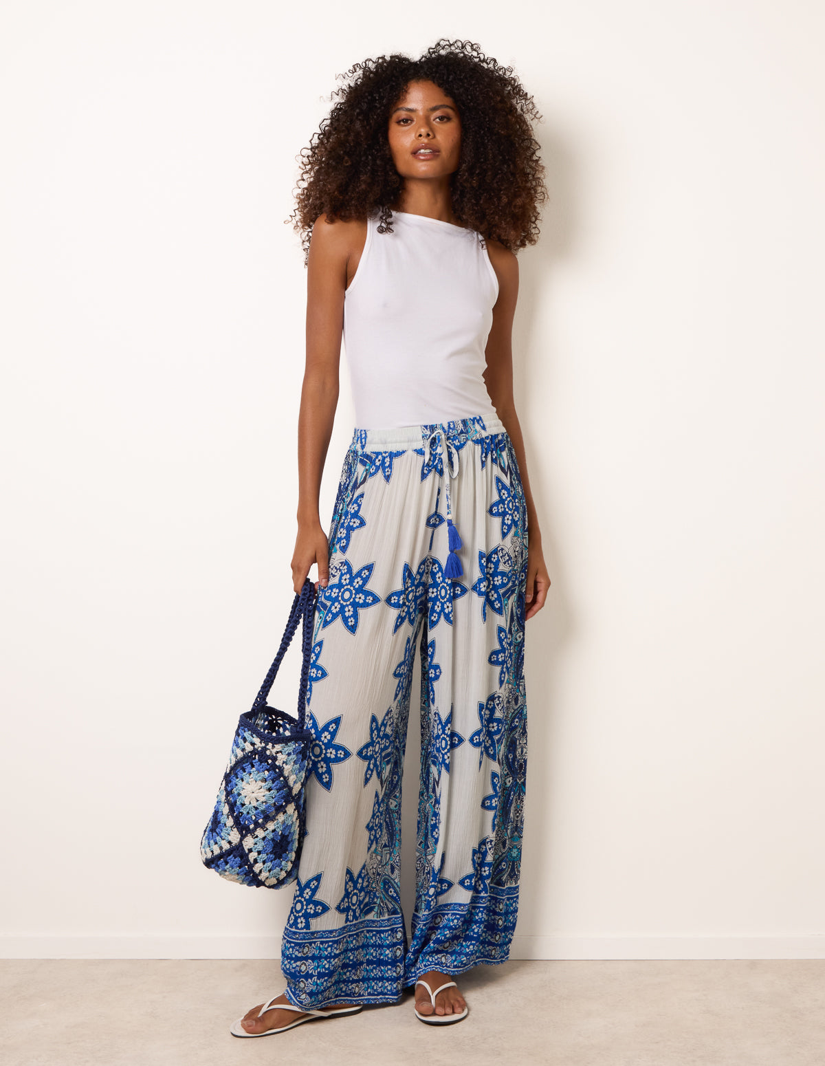 Experience breezy comfort with these crinkled wide printed trousers. Their relaxed fit and wide leg cut make them perfect for weekend strolls and days out.