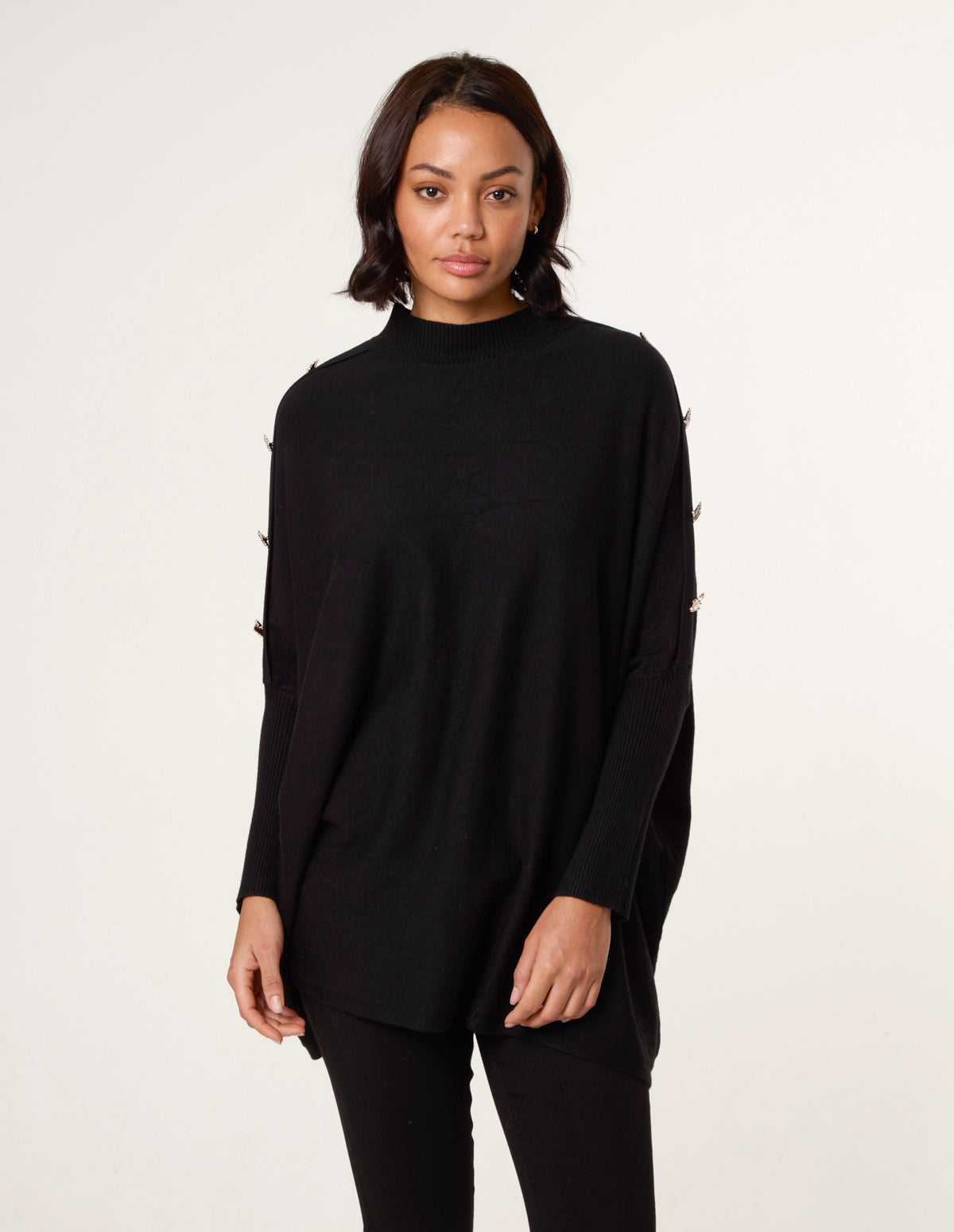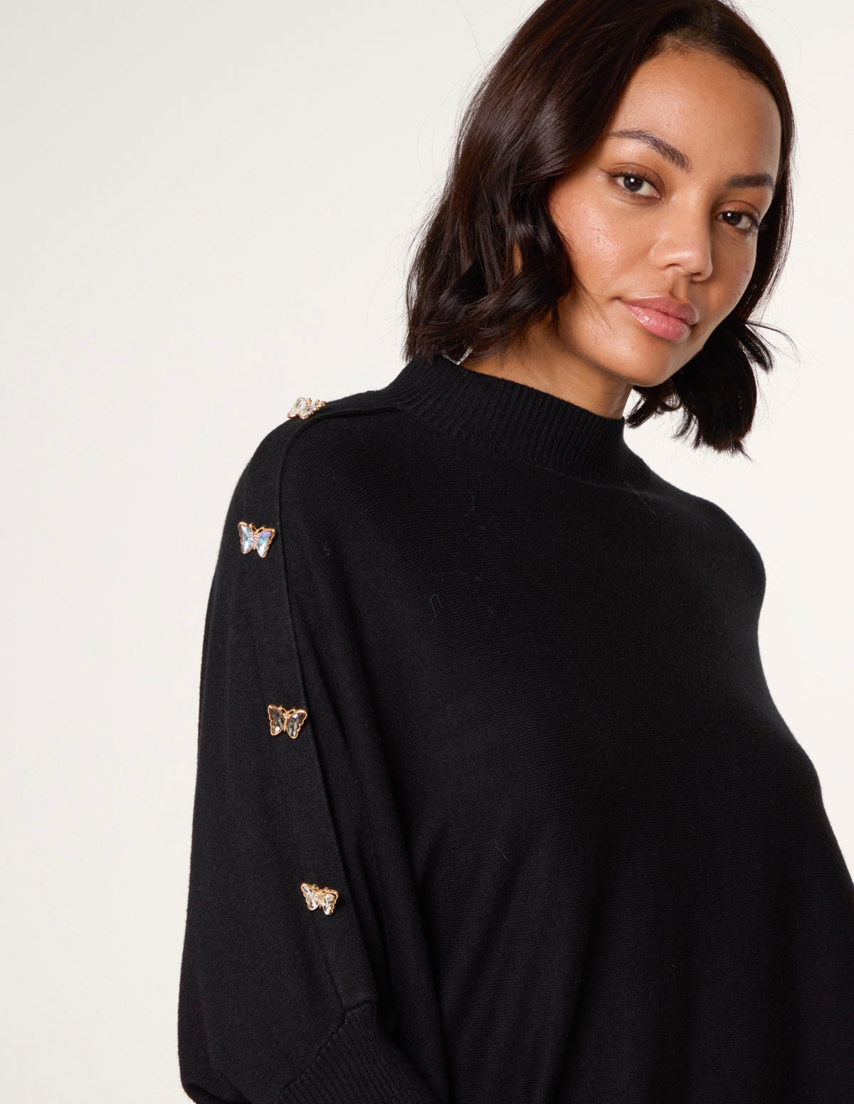Add a fancy touch to your knitwear with this butterfly shoulder detailed jumper. Team with leggings for the perfect day to day wear.