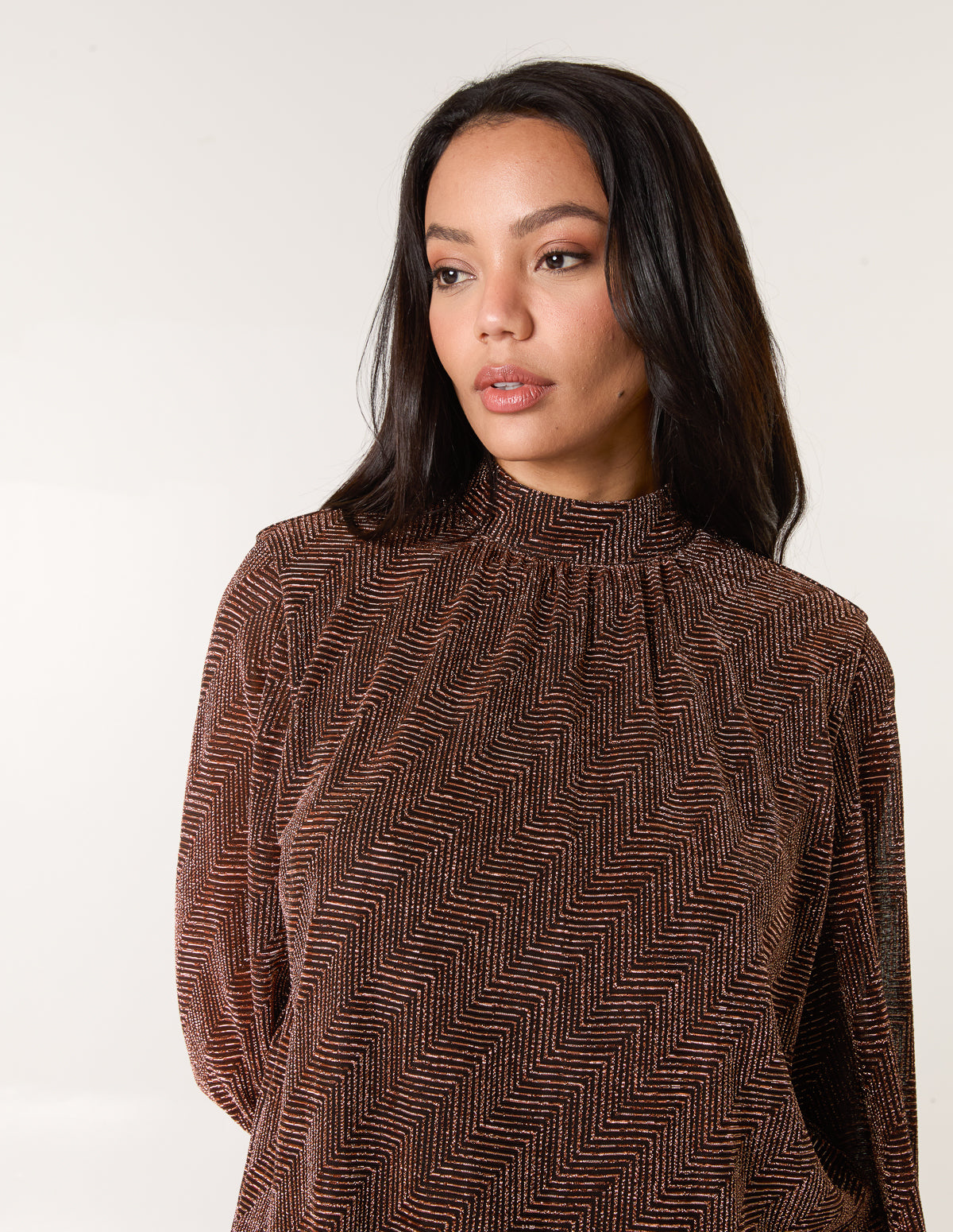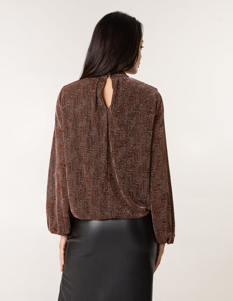 Lurex Puffball High Neck Blouse