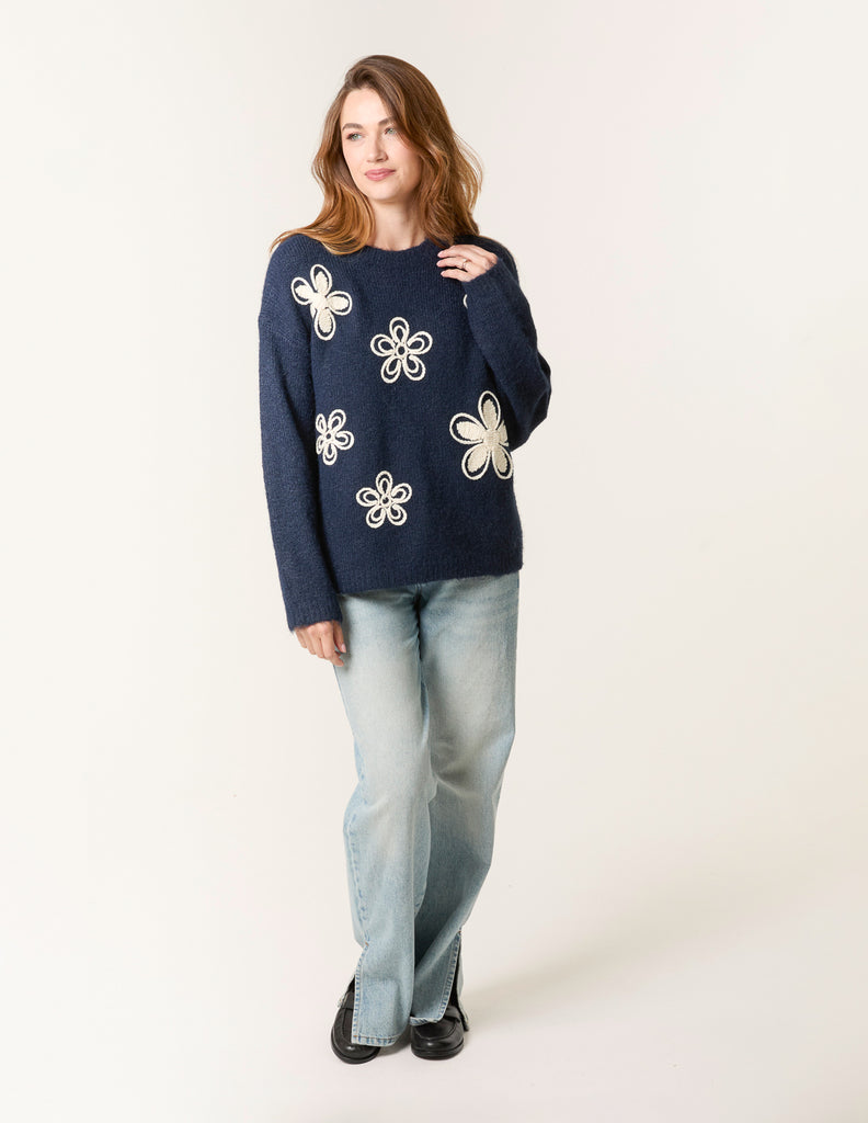 A cute, cosy and iconic jumper, taking embroidery for SS into AW. Team this flower embroidery jumper with flared jeans and PU leather boots.