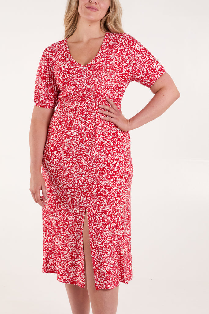 With it's shirred bodice making this cute midi dress a versatile pick for all your summer plans. Team a denim jacket and sandals.