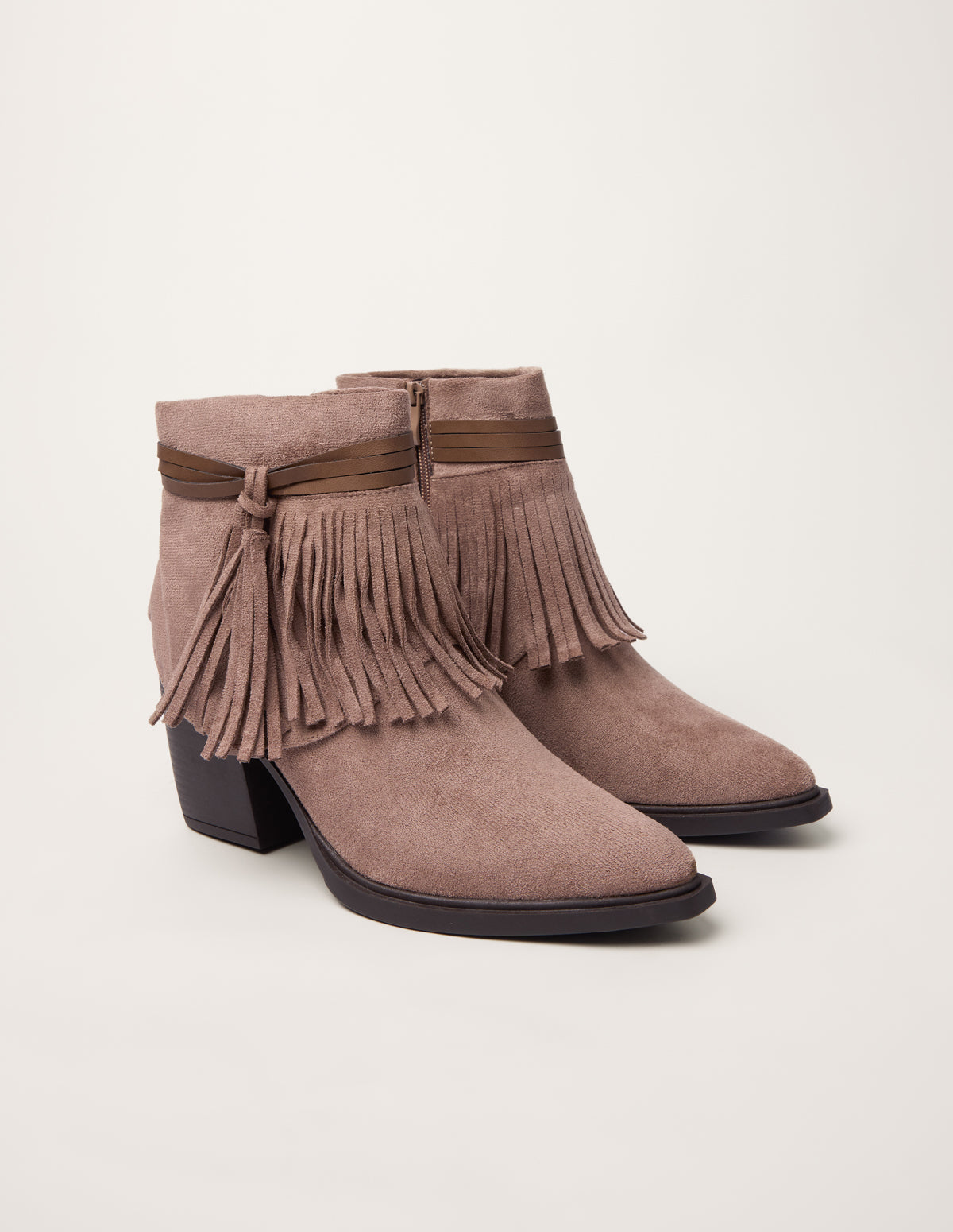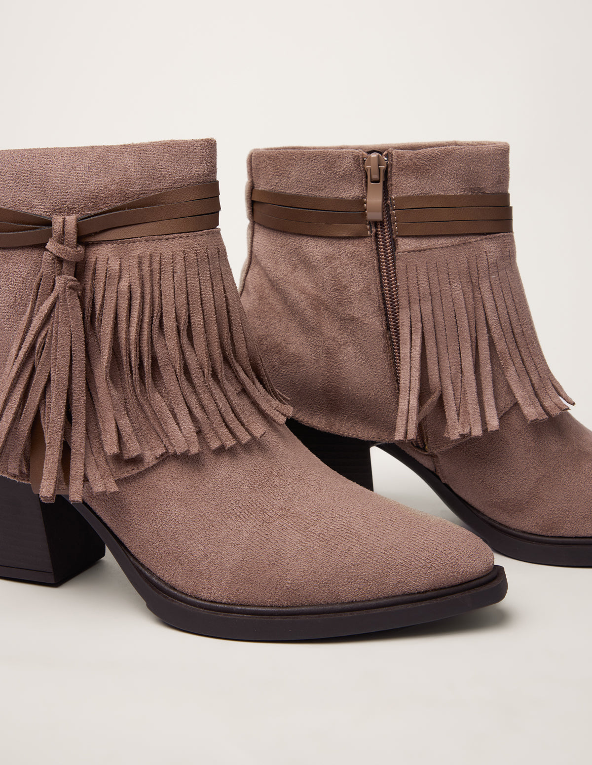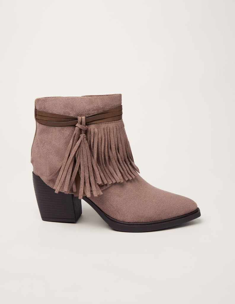 These fringe boots offer a stylish nod to western trend this season. Team with a matching suede jacket, mom jeans and a basic tee.