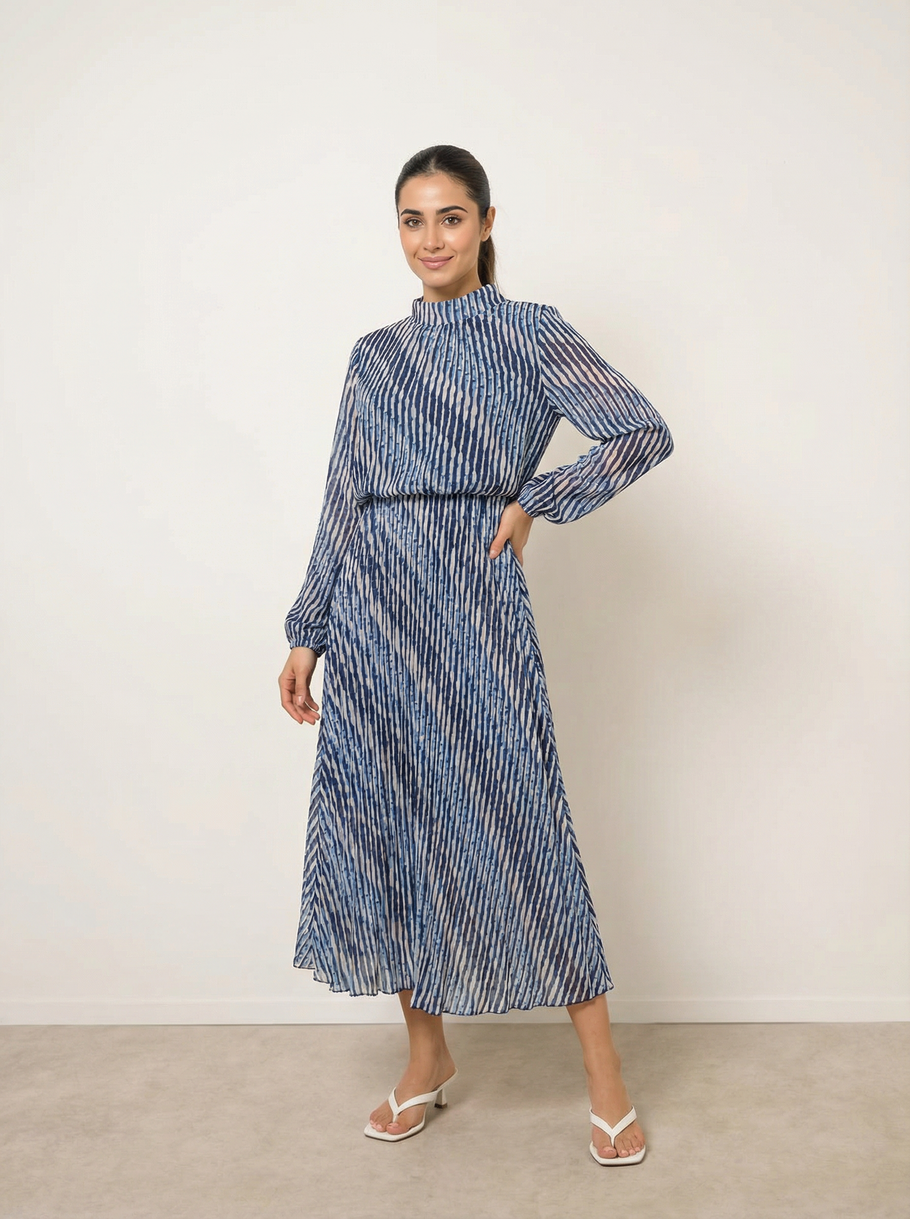 If you have a special event coming up and you're in need of something that is both chic and fun, our High Neck Printed Dress is here for you. With a high neck and abstract print, this dress can easily be matched with your favourite high heel shoes and a mini bag.