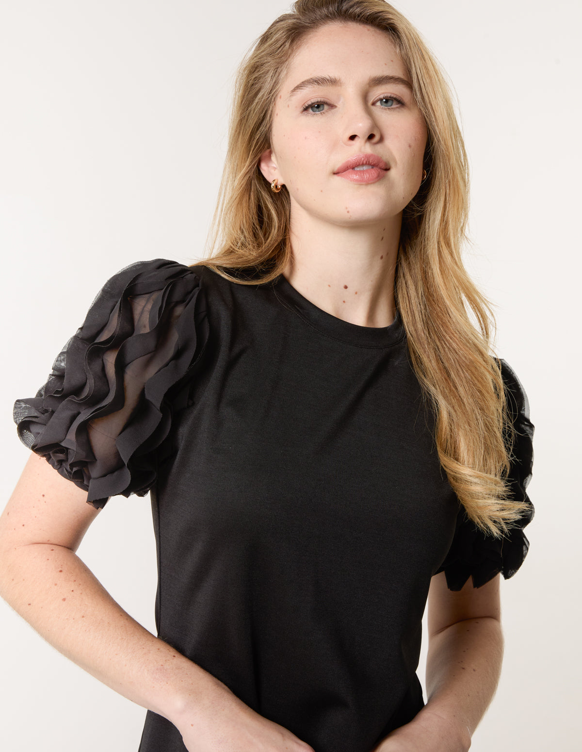 The ultimate mini dress for party season. Team this puff sleeve dress with sheer tights and court heels.