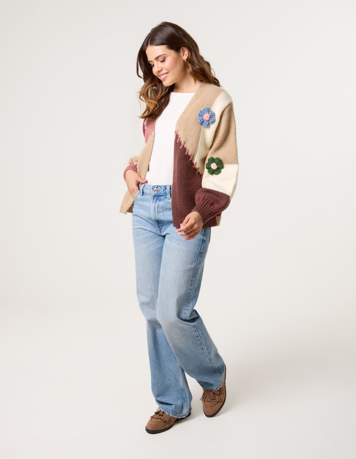 Taking it back to the 70's this season! This chunky, oversized, daisy embroidery knitted cardigan provides just that! Team this chunky cardigan with mom jeans and trainers and gain ultimate styling points this season.